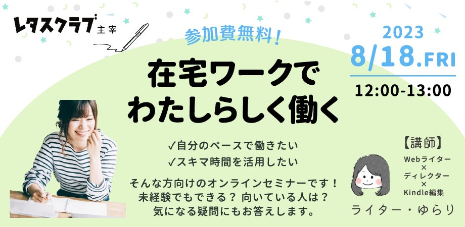 自分の時間や生活も大切にしつつ、やりがいを感じられる仕事があれば、挑戦してみたい。そんな人にレタスクラブがおすすめしたいのが、Webサイトに掲載する記事や説明文、Web広告などの文章を書く「Webライター」という仕事です。