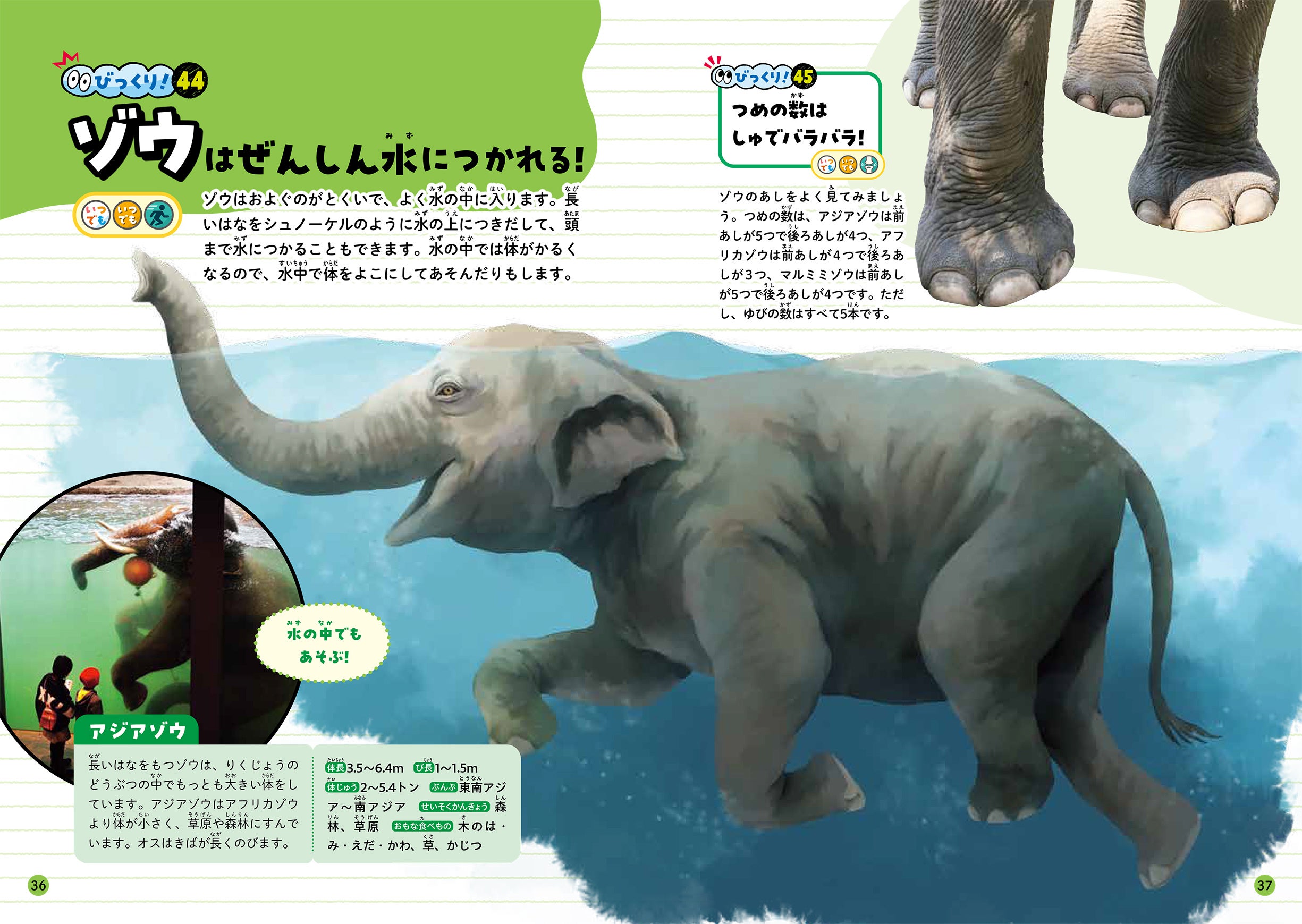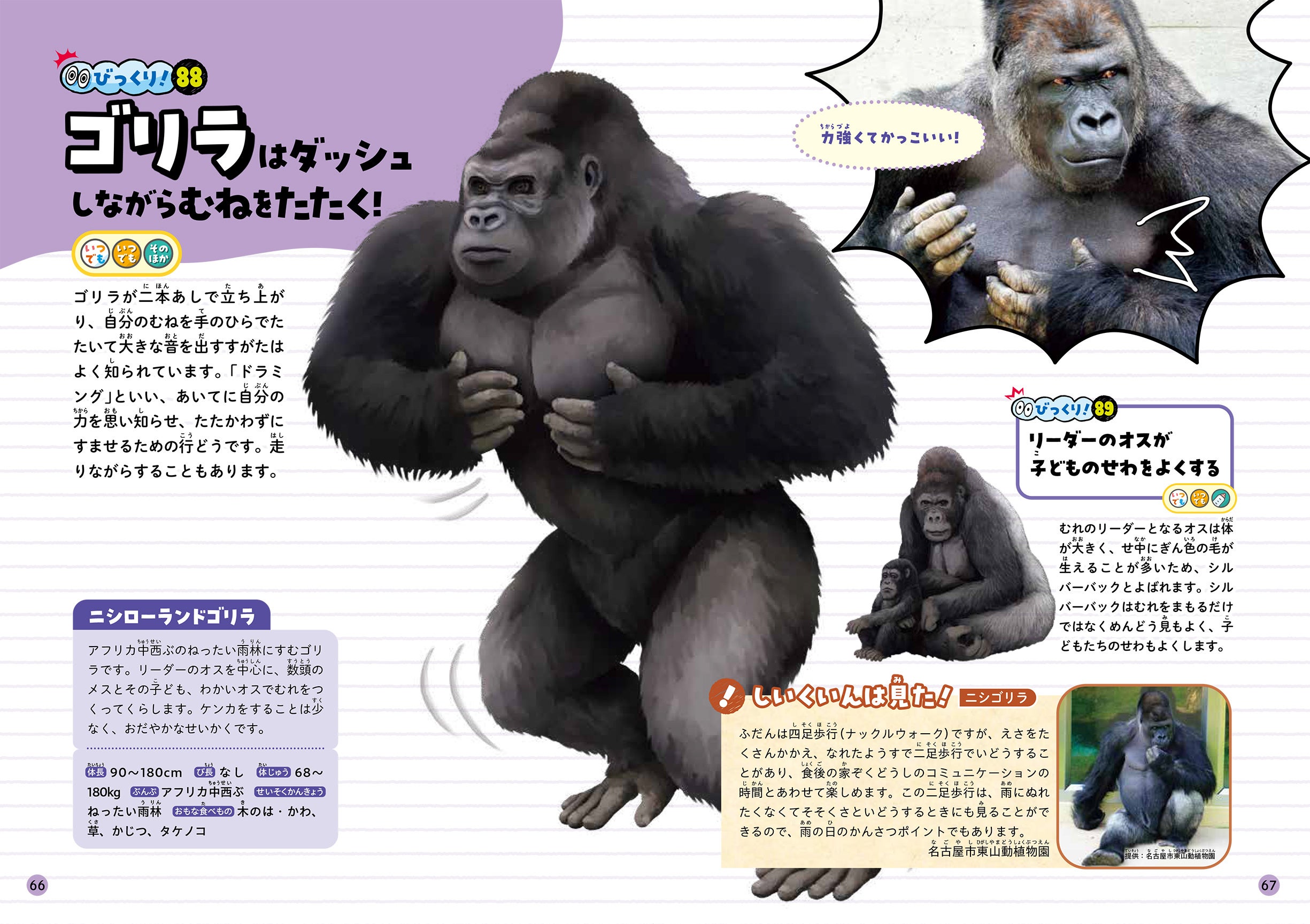 読んでいるだけでも楽しい1冊ですが、動物園のお供にもおススメです。観察しやすい季節や時間帯を示したアイコン、ダウンロード特典の「動物観察シート」もついてくるので、自由研究にも使えます。