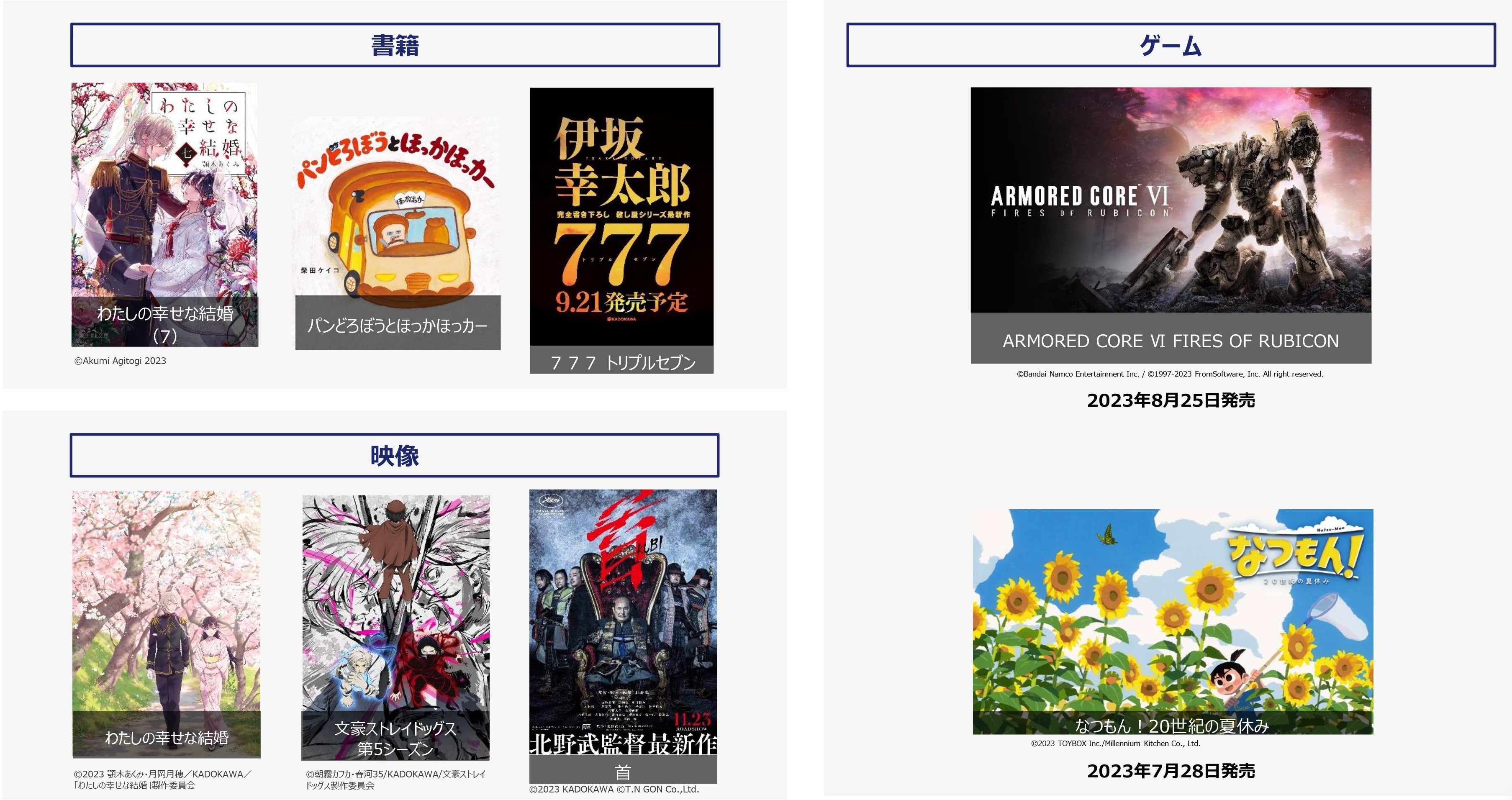 ◆第2四半期以降は、出版で人気シリーズの続編を含む新刊点数の増加・回復を見込むとともに、それらのグローバル・メディアミックス展開による収益向上や、複数のゲーム新作の発売を予定するなど、営業利益は拡大する見込みです。