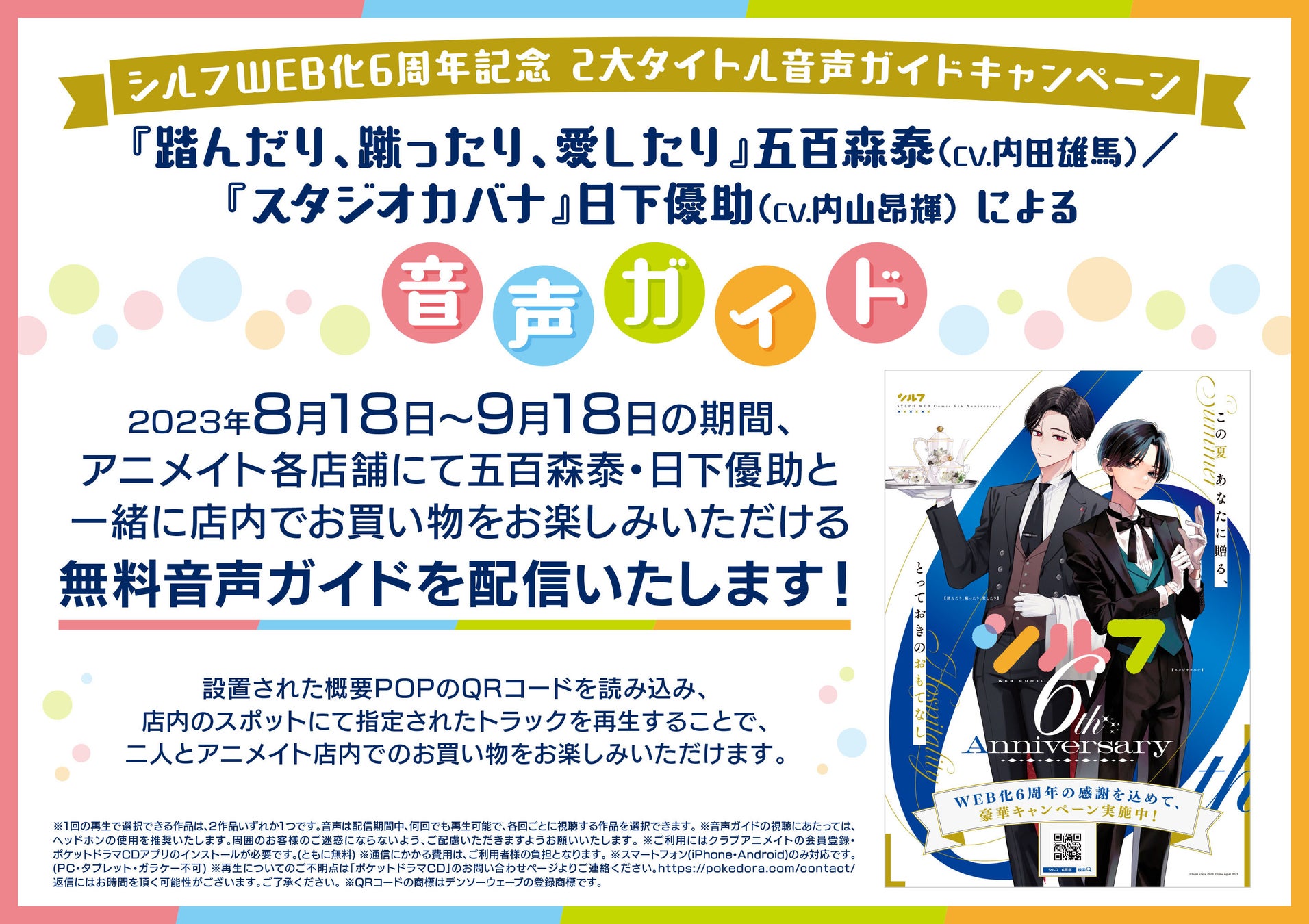 フェア期間中、ポケットドラマCDアプリを使用して、実際の店舗と連動した店内ガイド音声を聴くことができます。さらに、池袋本店以外の全国アニメイトでも対応するガイド音声を視聴可能です。