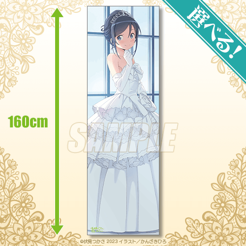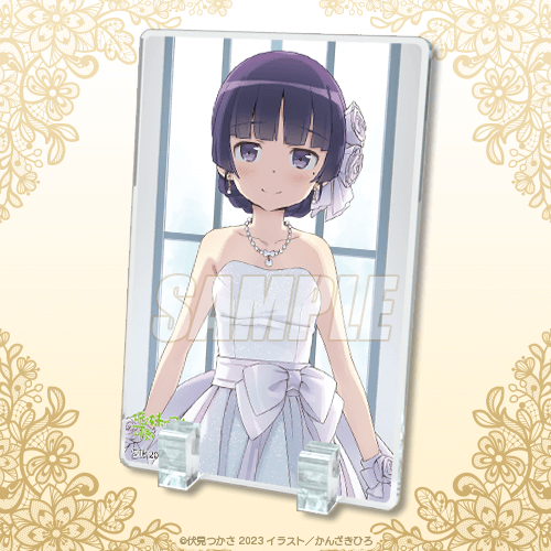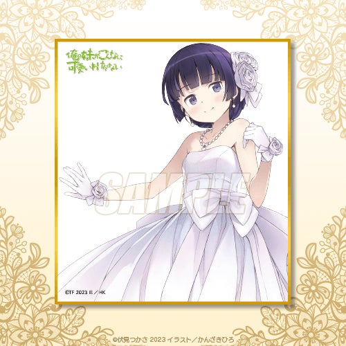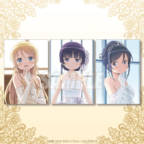 賞品は原作イラストレーター・かんざきひろ先生が描き下ろした高坂桐乃、黒猫、新垣あやせの可愛いウエディングイラストを使用した特大布ポスターのほか、電撃文庫の口絵やカバーイラストを使用したA3クリアポスターやミニ色紙など盛りだくさん! ここでしか手に入らないアイテムが盛りだくさんなので要チェックです。(高坂桐乃、黒猫、新垣あやせの同描き下ろしイラスト使用した抱き枕カバーもカドカワストアほかで同時に受注予定。抱き枕カバーの裏面は、激レアなランジェリーの初出し描き下ろしイラストを使用)。