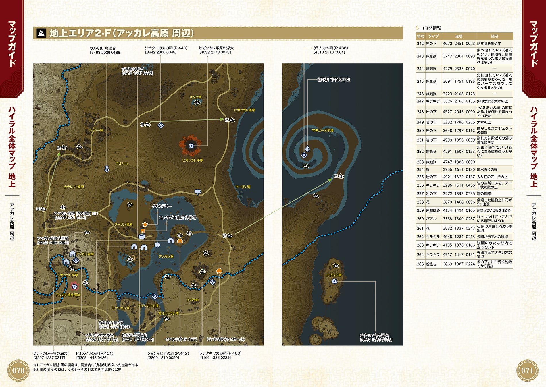 ・地上、空、地底の詳細マップを掲載。コログや破魔の祠などの場所がすべてわかる