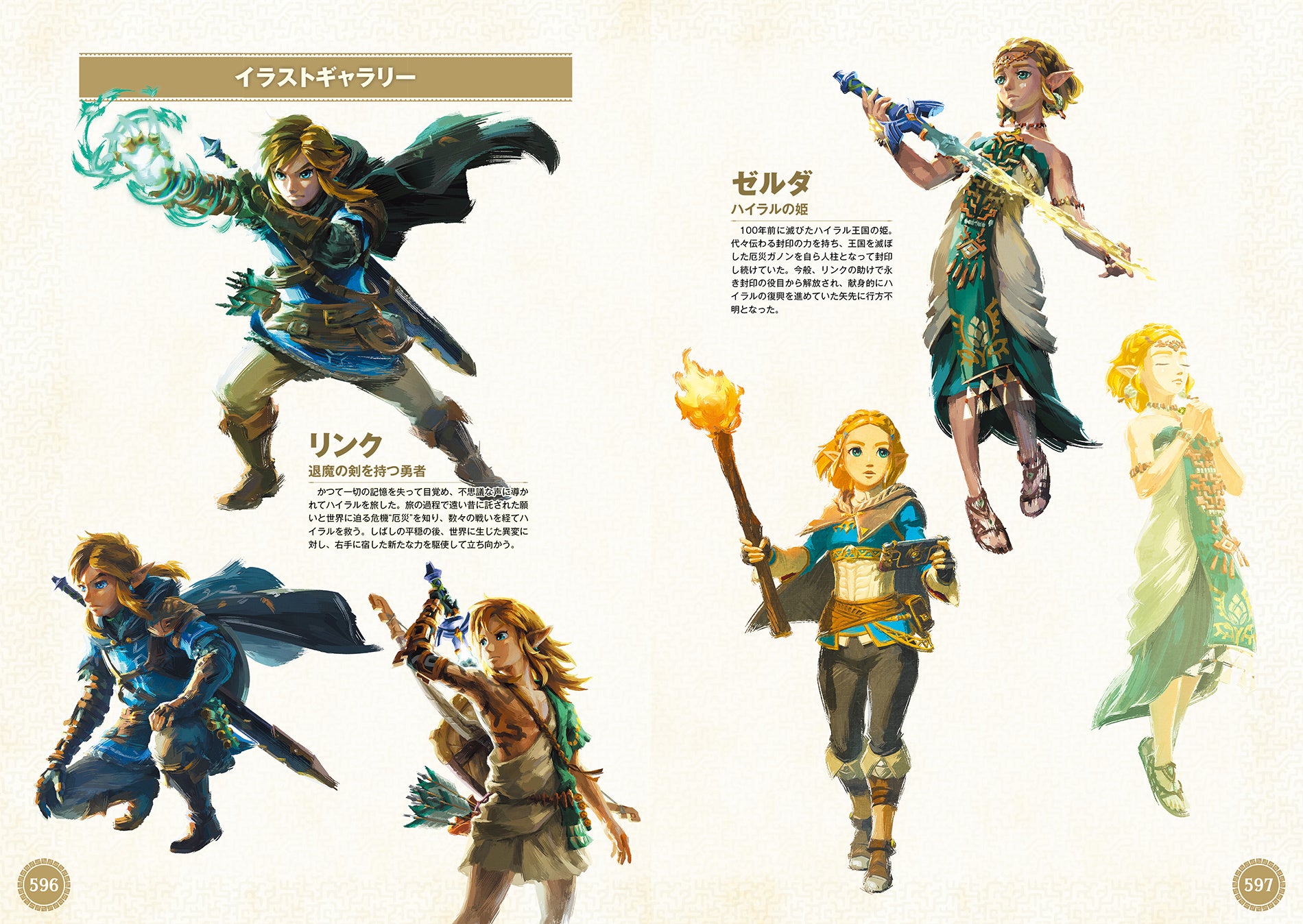 リンクとゼルダ、賢者たちを始め、主要キャラクターのイラストも収録