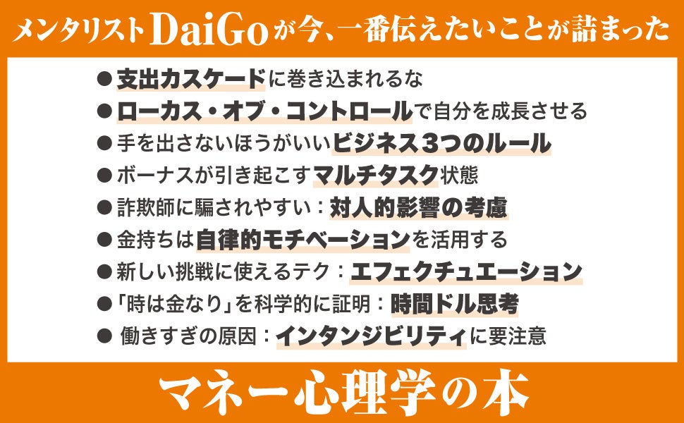 メンタリストDaiGo1年半ぶりの新刊は「お金の心理学」がテーマ。読むだけで勝手に貯まるようになる本