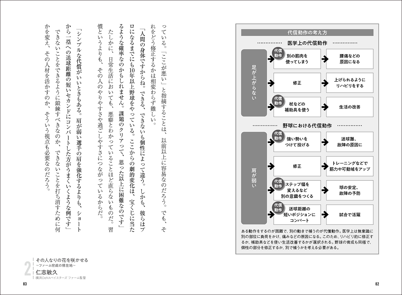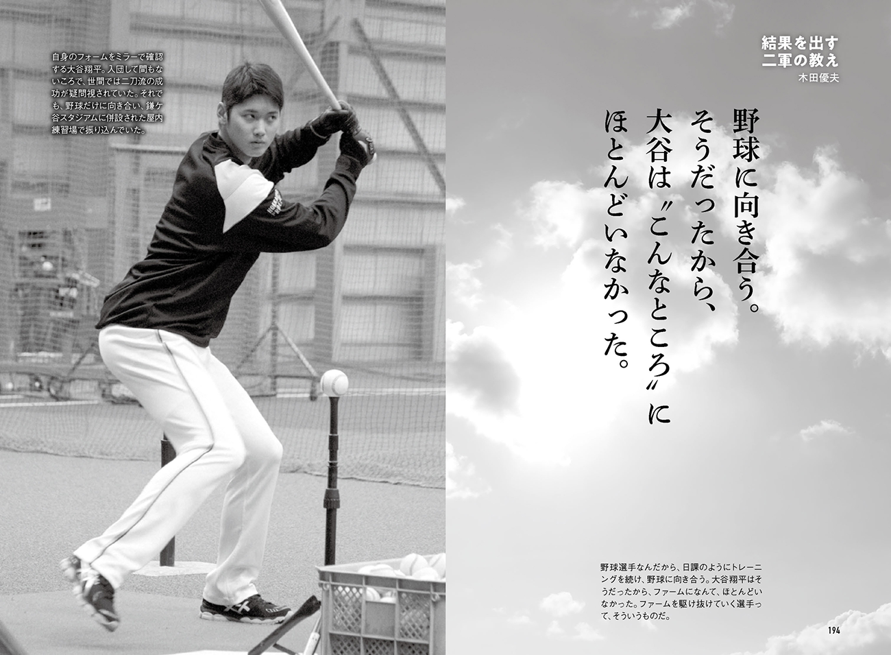 本書では、プロ野球の二軍監督とコーチ5名がプロ野球のファーム組織の日常、サクセスに至った選手の逸話、そして大谷選手、ダルビッシュ選手のNPB時代のエピソードなど、育成現場のリアルを解説しています。