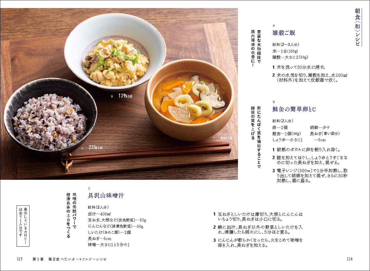 その上で、私たち読者が何を食べればオートファジーを高めることができるか、その具体的な食品、食べ方、毎日の食卓に簡単に取り入れられるレシピまでを掲載しています。
