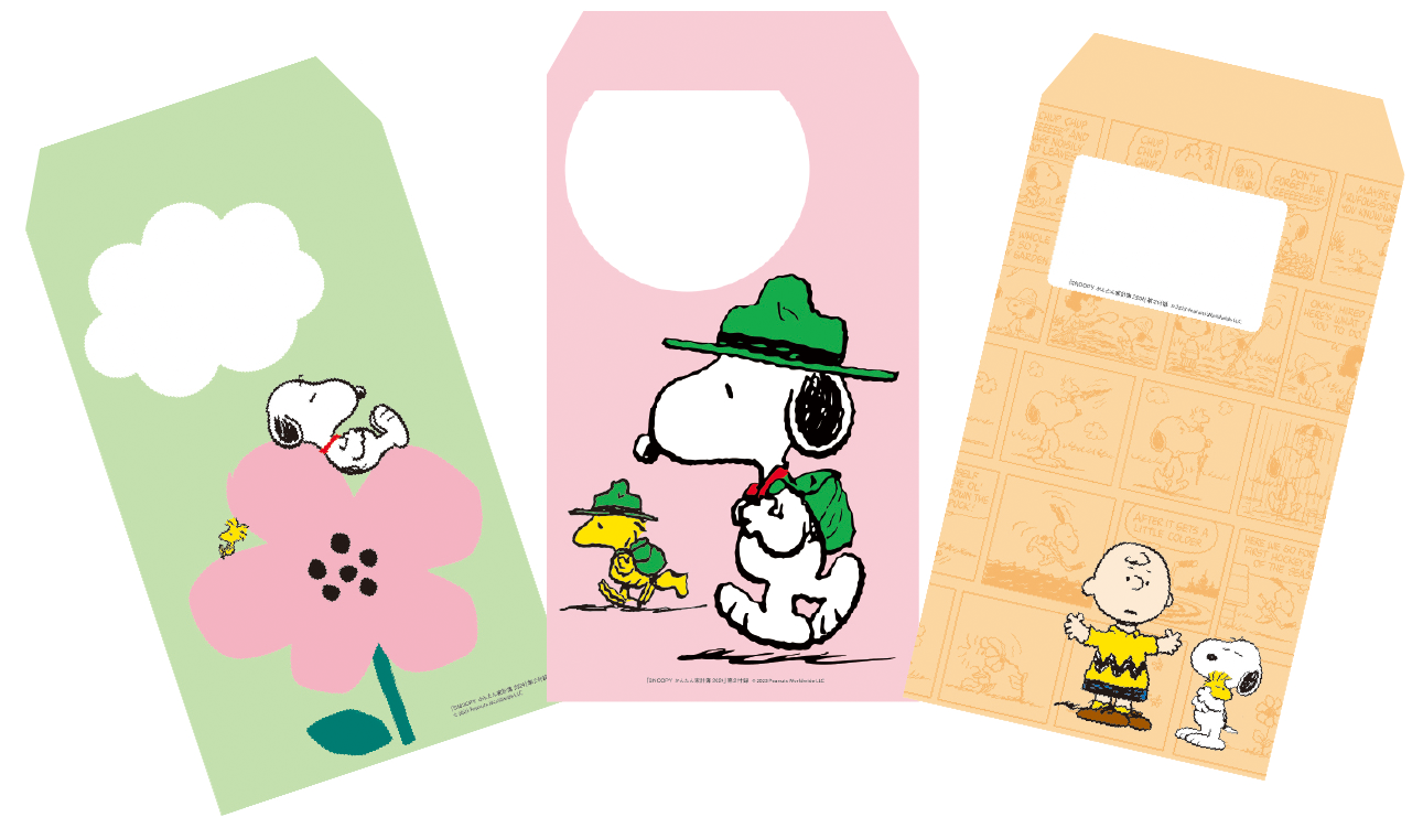 今年もスヌーピーのオリジナルシール、袋分け封筒、スケール付きしおりの3大付録つき!
