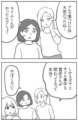 ――子供のお迎えに来ていたママ友4人。立ち話をしている最中に、子供たちが高級外車にイタズラし、傷をつけてしまったことが発覚。目撃者は子供だけ、誰が傷をつけた犯人なのか分からない……。親が見ていないときに限ってこういうこと、おきますよね。最初は全員で解決の道を探るのですが、徐々にトラブルに発展していきます。これは現実に起きたことなのでしょうか?