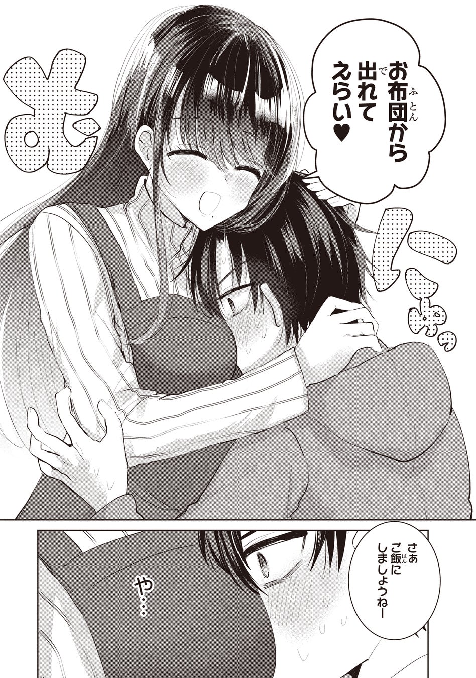 本作は、とある理由から家に引きこもっている少年・宗太と、家事代行として彼のお世話をする美しい女性・ハイネさんの、甘々で少し不思議な日常を描くコメディ作品です。タイトルにもあるように、ただ生きているだけでもハイネさんは宗太を「えらい!」と褒めてくれるのですが、それにはある理由があって……?