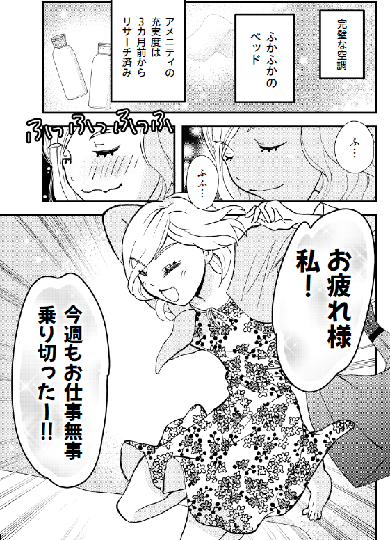 愛してやまないビジネスホテルを予約し、コンビニやテイクアウトできる店で料理とお酒をしこたま買い込み、女子力ゼロの姿で部屋にこもる……。