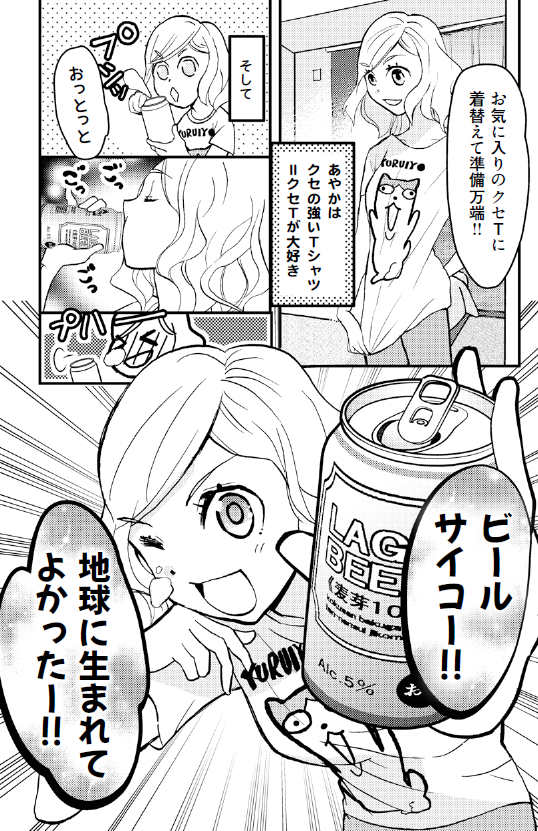 部屋でお酒を片手に「地球に生まれてよかった~‼」と叫ぶ。