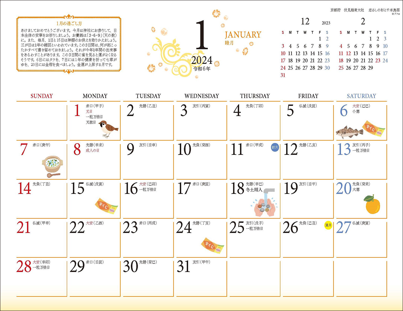 部屋に飾るだけで金運アップ、開運習慣も身に付く、文字も大きく運のいい日が一目でわかる!と毎年大評判です。