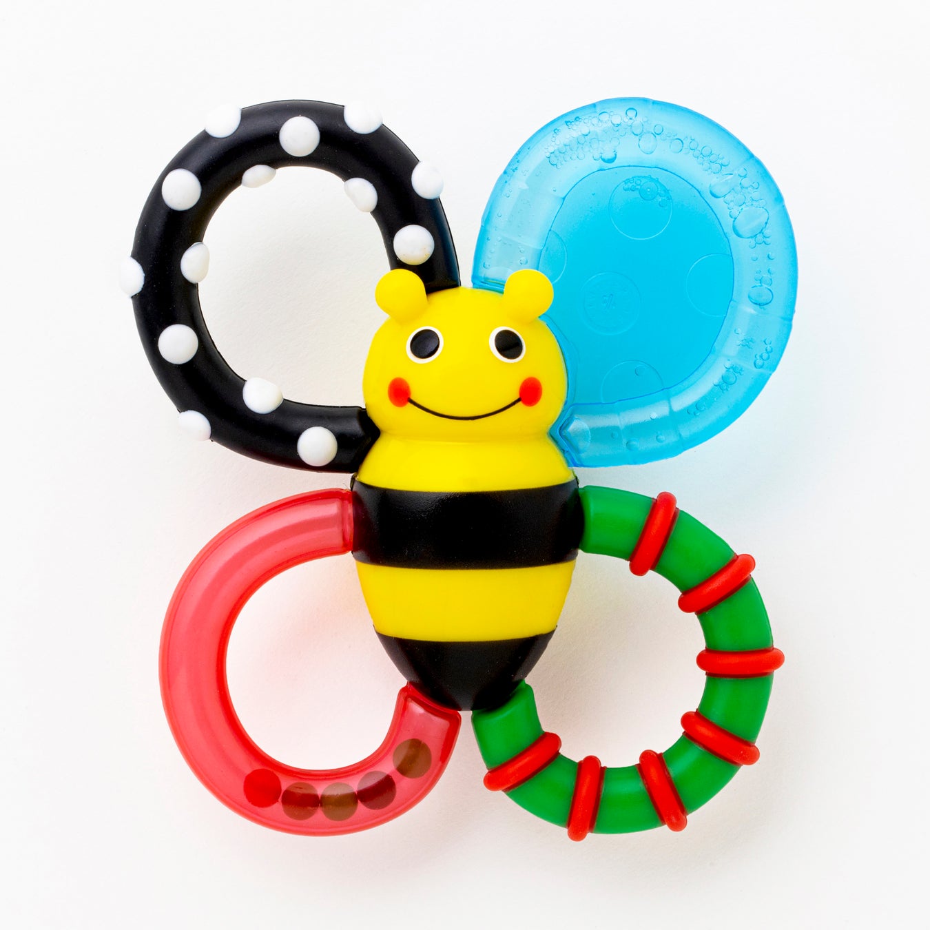 世界的なトイブランドSassyの人気No.1おもちゃ「カミカミみつばち」。赤ちゃん研究に基づく色と模様、触感が赤ちゃんの目と脳を育てる、ベストセラーの歯固めです。