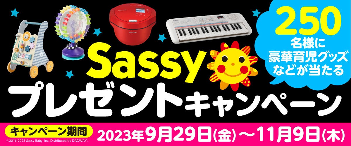 また、250名様にホットクック・チャイルドシート・知育玩具など豪華賞品が当たる「Sassyプレゼントキャンペーン」を開催中です。