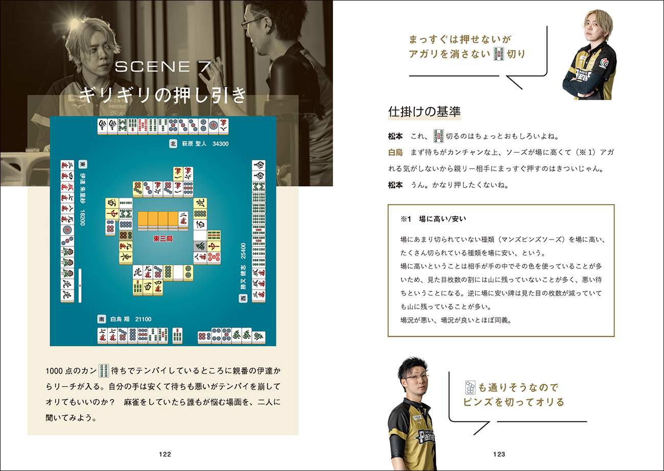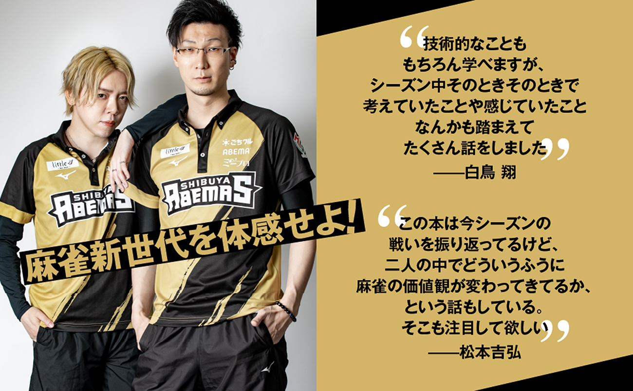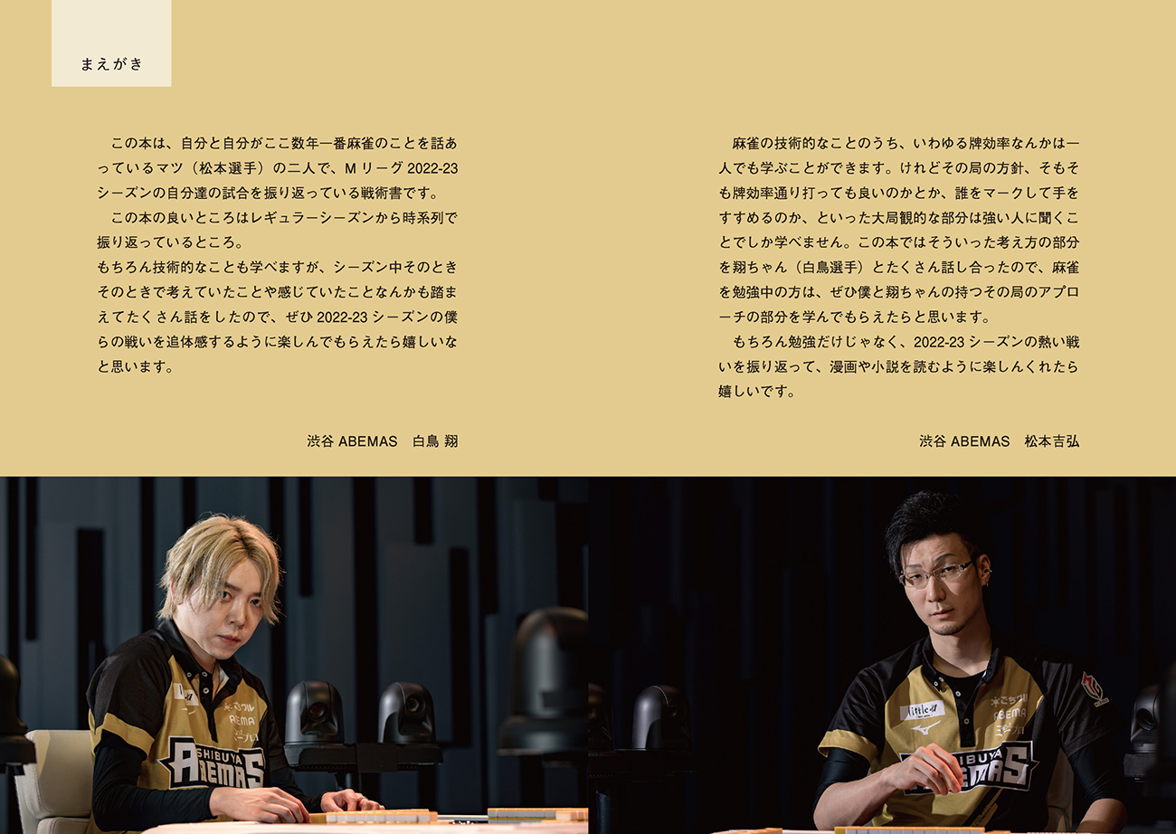 本書では、Mリーグ2022-23シーズン優勝を果たした渋谷ABEMASの白鳥翔選手、松本吉弘選手が、実戦譜と共に激闘を振り返りつつ、その局面で考えていたこと、読み、結果分析など、勝つための思考について語り尽くしました。