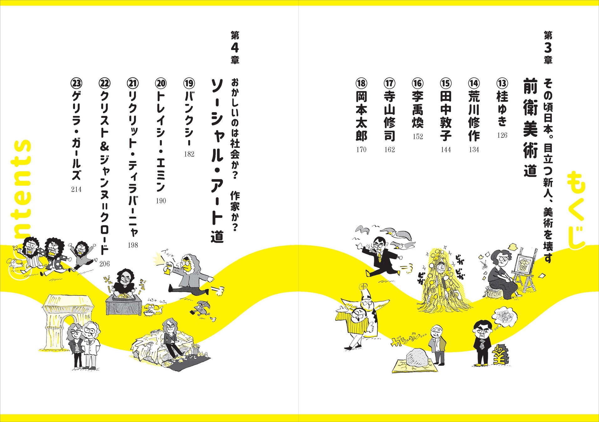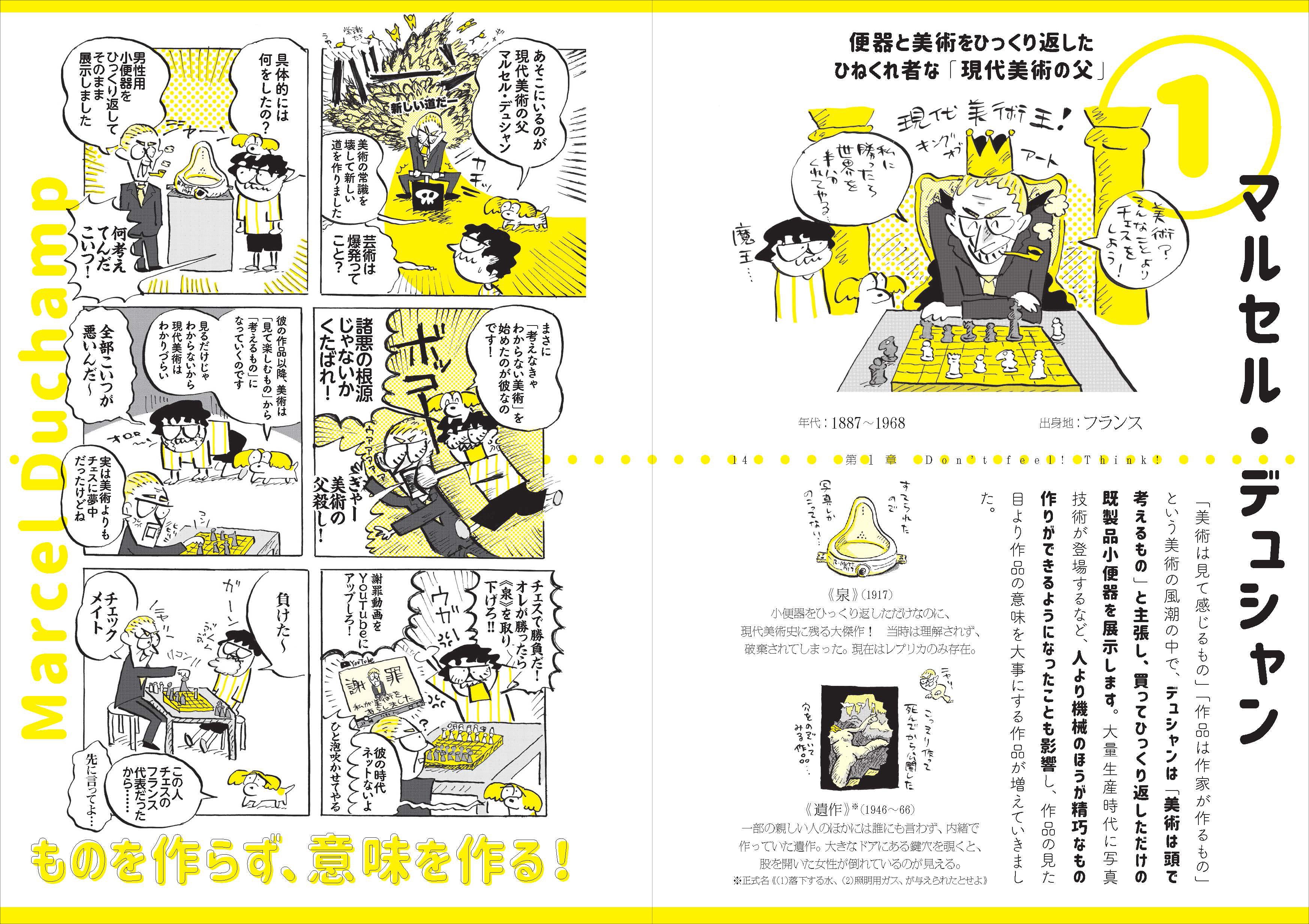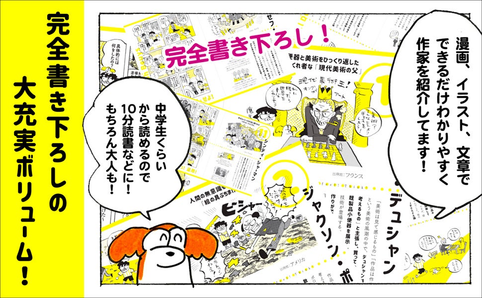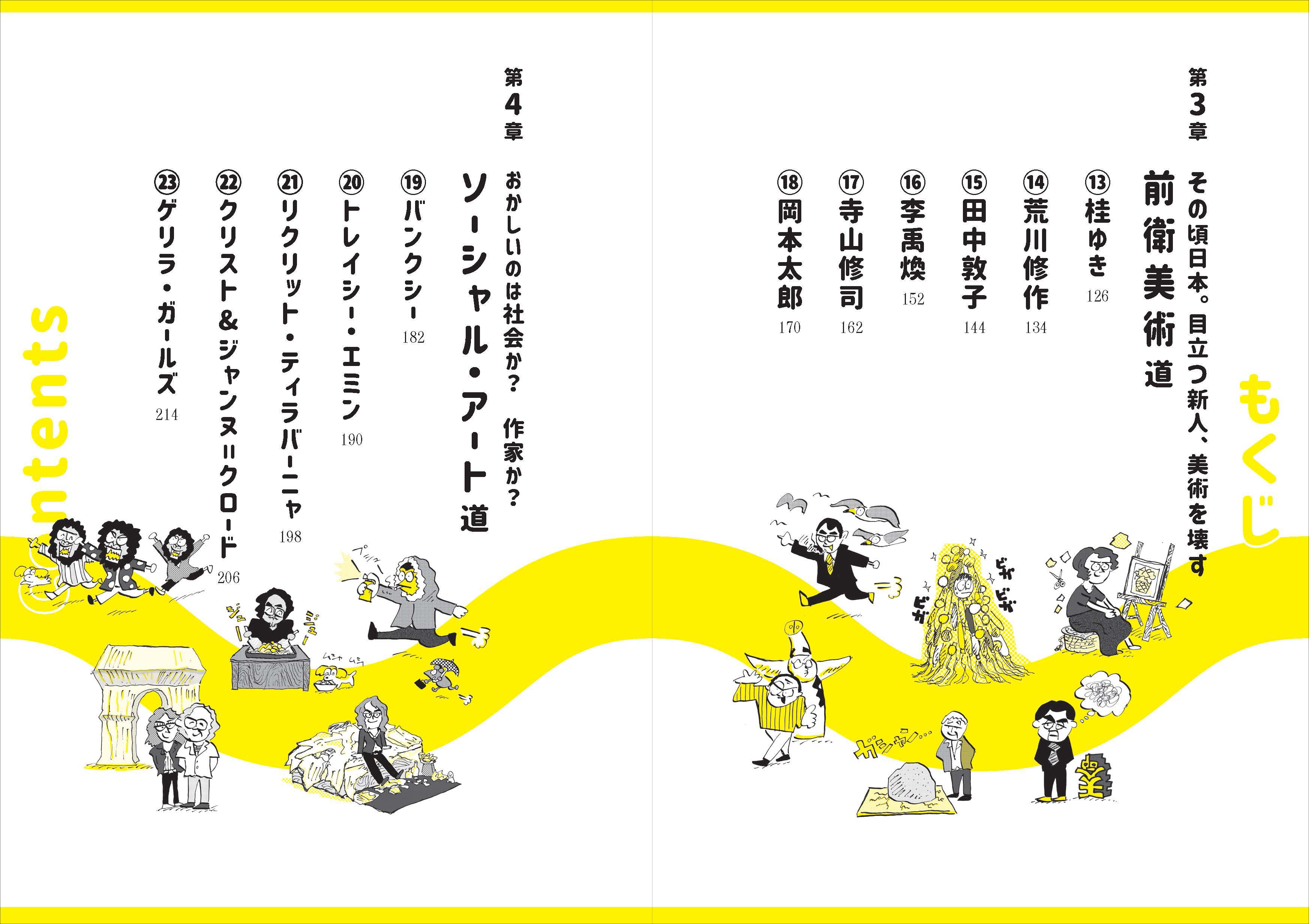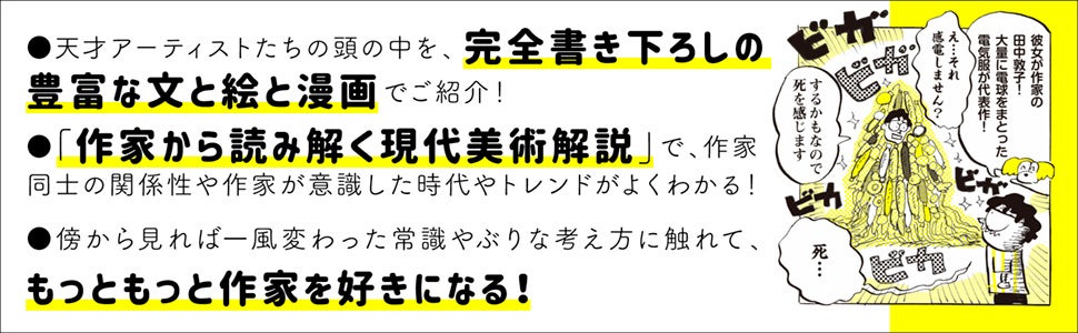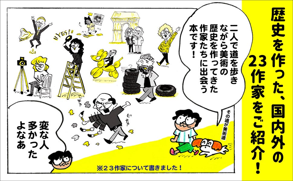 美術の歴史の流れに合わせて、国内外を横断した23人のアーティストを絵と漫画とともに紹介します。
