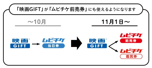 併せて同日より、ムビチケ当日券の購入の際に利用できる「映画GIFT」が名称変更後のムビチケ鑑賞券に加え、公開日の前日まで販売している通常窓口よりもオトクなムビチケ前売券にもご利用いただけるようにサービスを拡充いたします。