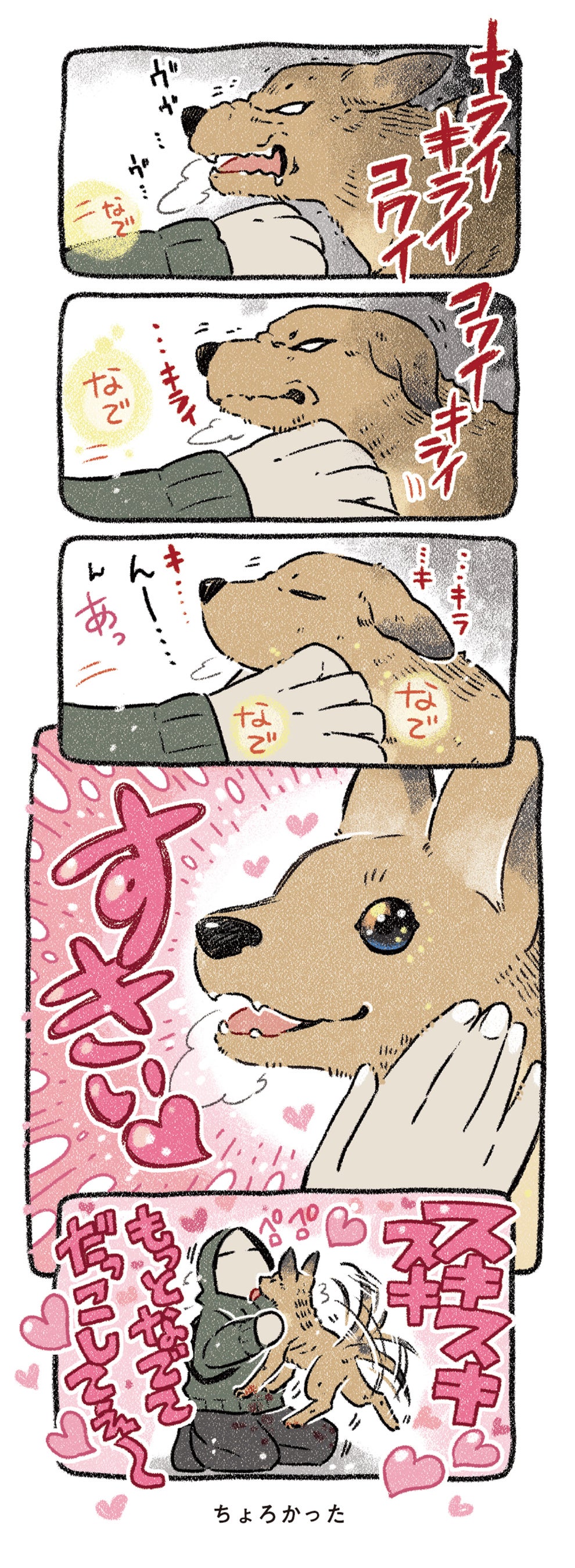 放浪の通報が入り、保護した茶々。吠えるし暴れるし、ケージやソファーを噛みちぎるほどの“破壊神”。だけどとても寂しがり屋で甘えん坊。そんな茶々を受け入れてくれる家族は見つかるのか? 葛藤を抱えながらも季節はめぐっていきます――。