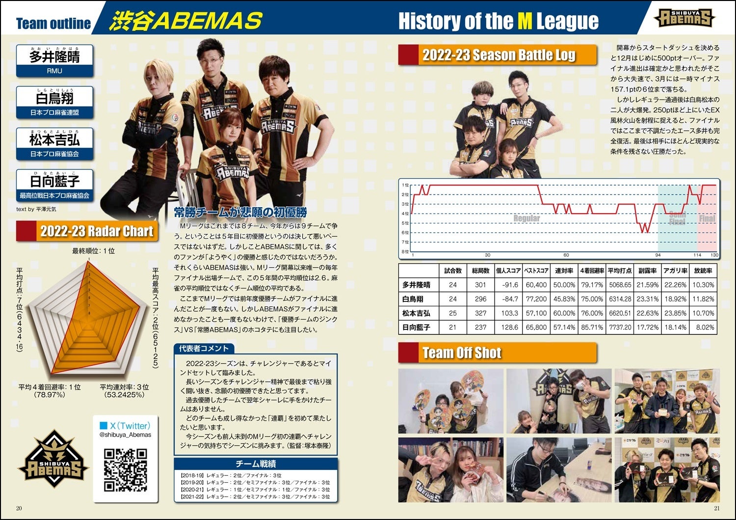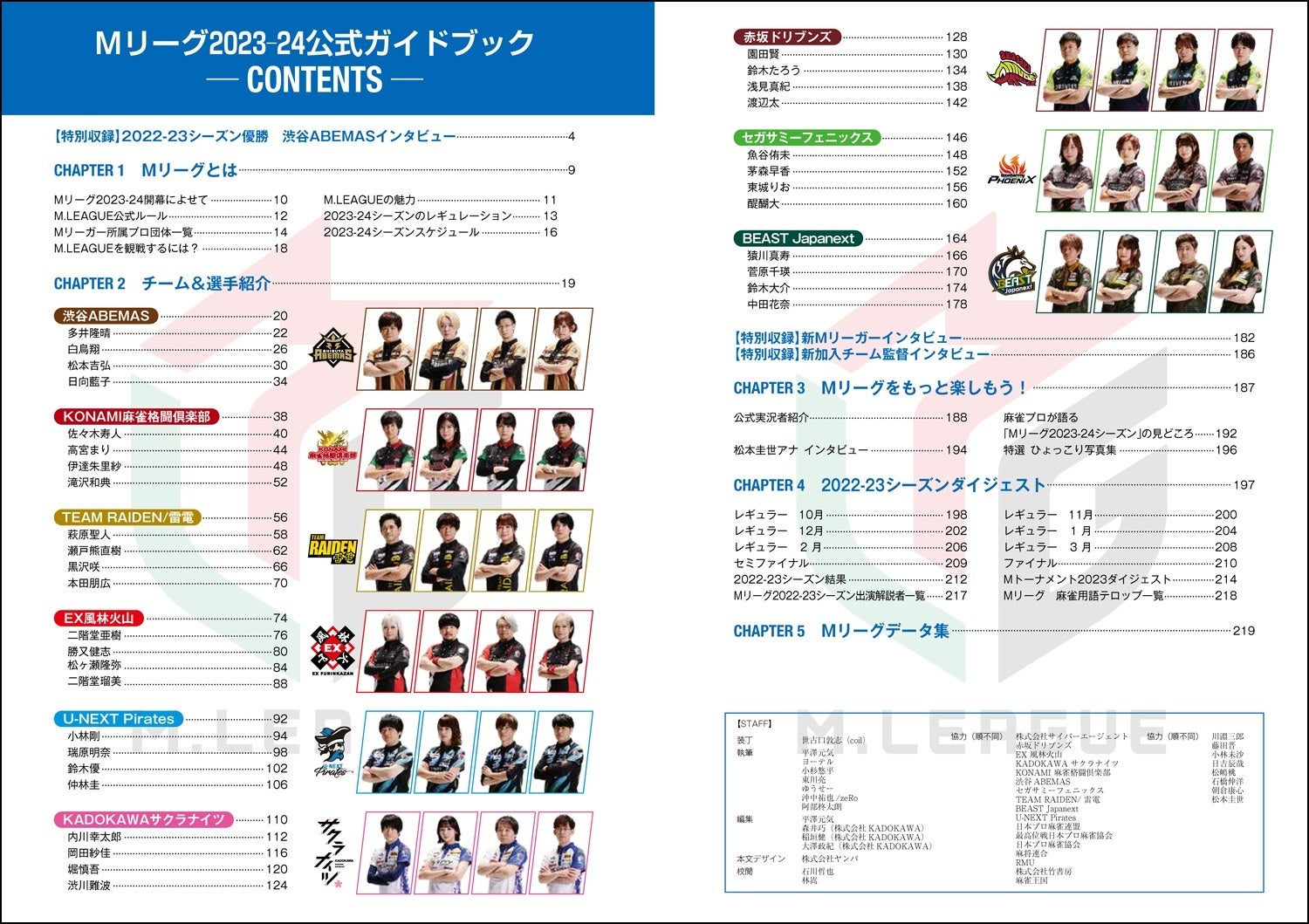 Mリーグは今シーズンから新たに「BEAST Japanext」が加盟し、1チーム追加した全9チーム、36選手で構成され、試合数も増加! 本書のコンテンツもボリュームアップし、新チーム、新Mリーガーの特別インタビュー、前シーズン優勝チーム「渋谷ABEMAS」の特別対談、Mトーナメント2023ダイジェストなど、新企画も多数収録。Mリーグの魅力と見どころが詰まった究極の一冊になっています。