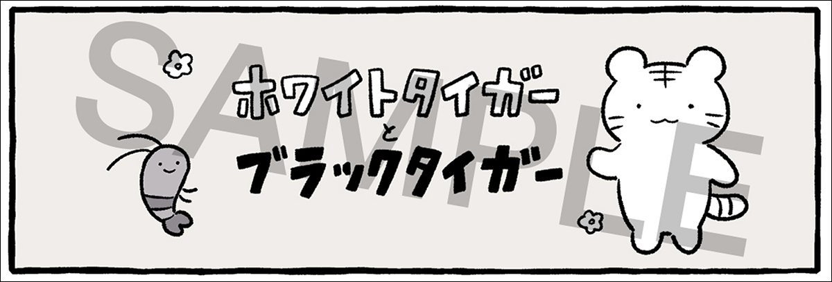 強いものにあこがれるホワイトタイガーくんと、ポジティブなえびのブラックタイガーくんが織りなす、笑いあり・やけどありの友情物語です。