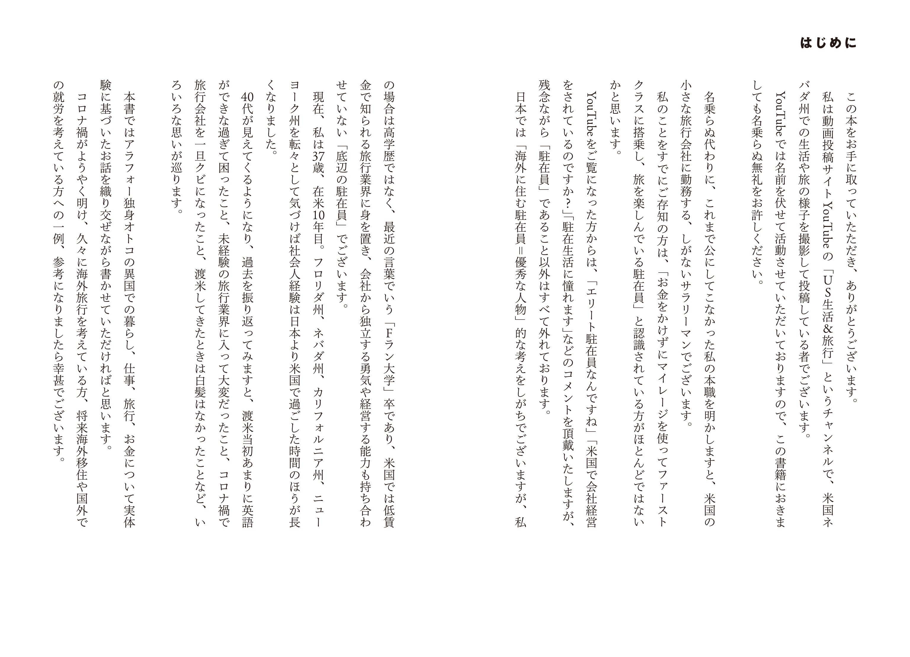在米10年目のアラフォー駐在員。フロリダ州、ネバダ州、カリフォ ルニア州、ニューヨーク州を転々とし、コロナ禍でリストラを経験。失業時にYouTubeチャンネル「US生活&旅行」がブレイク。マイルを使って飛行機のファーストクラスに搭乗した様子の動画は280万回再生を突破(2023年10月時点)。