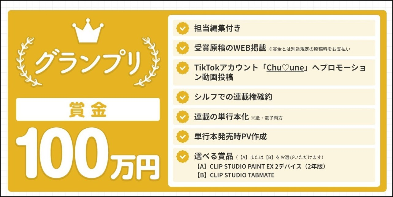 ◆グランプリには賞金100万円&連載権&単行本化確約などの豪華賞品!