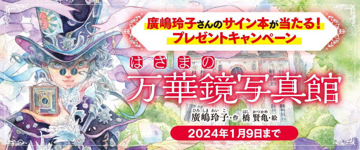 『はざまの万華鏡写真館』廣嶋玲子さんのサイン本が当たる、プレゼントキャンペーンが本日よりスタートいたしました。