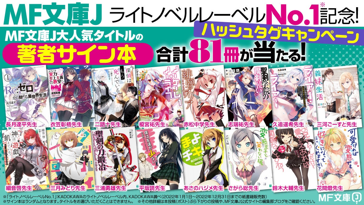 ※MF⽂庫J2022年KADOKAWAライトノベルレーベル売上No.1についてはKADOKAWA調べ(2022年1⽉1⽇〜2022年12⽉31⽇までの紙書籍販売数)での数字となります。