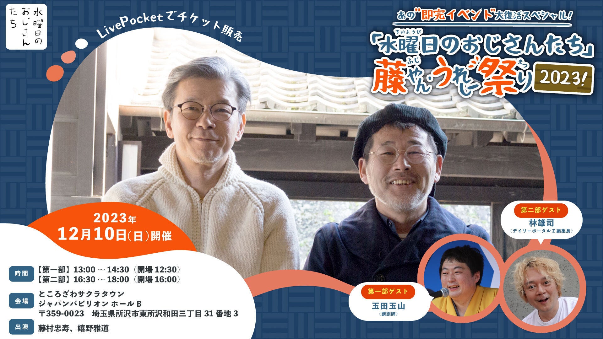 あの”即完イベント”大復活スペシャル!「水曜日のおじさんたち」藤やん・うれしー祭り2023!一般チケット販売中!