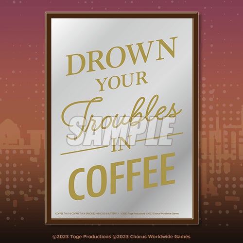 商品は、『コーヒートーク』と『コーヒートーク エピソード2:ハイビスカス&バタフライ』のオリジナルグッズとなります。作品の雰囲気に浸れるコーヒーグッズやインテリア、魅力的なキャラクターを用いたファンアイテムなど、ここでしか手に入らない素敵なグッズが目白押し!