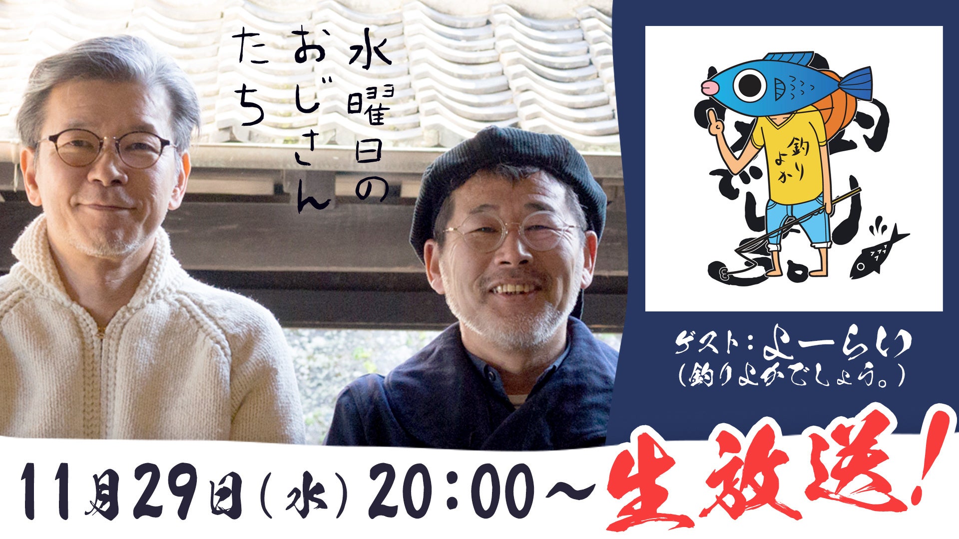 釣り系人気クリエイター「釣りよかでしょう。」リーダー、よーらいさんが、「水どう」ディレクター陣と4年ぶりの再会!ニコニコチャンネル『水曜日のおじさんたち』で、11月29日(水)20時より配信!