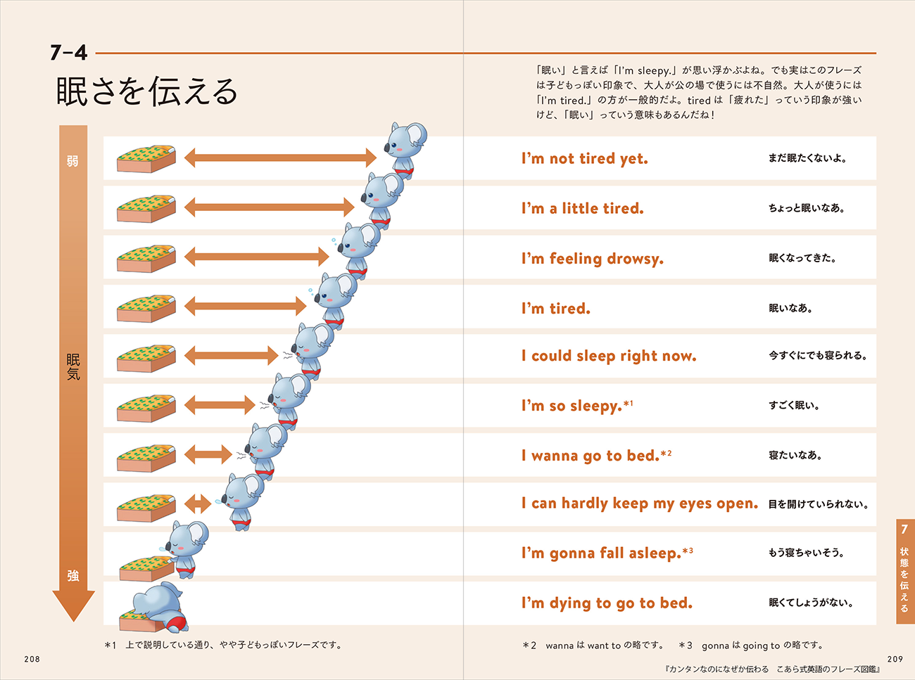 ⇒日本語だと簡単に表現できるのに、英語ではどういえばいいかわからないちょっとしたことが、英語で表現されている「程度別図解」ページがあります。