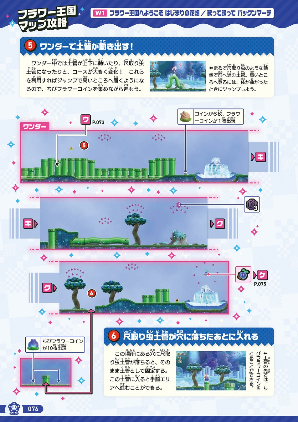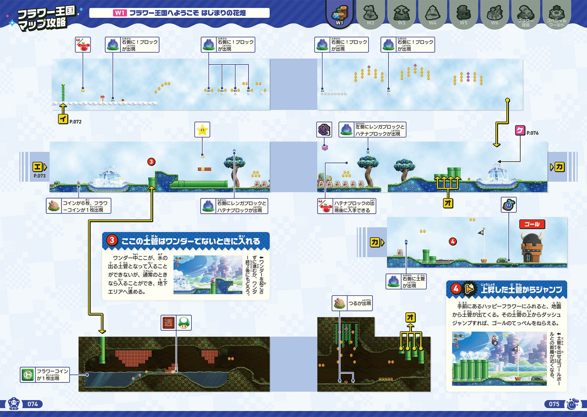 ワンダーフラワーにふれると、コースが不思議な世界に変化するワンダーのマップももちろん掲載。「ワンダーシード」入手までをマップで攻略しています。