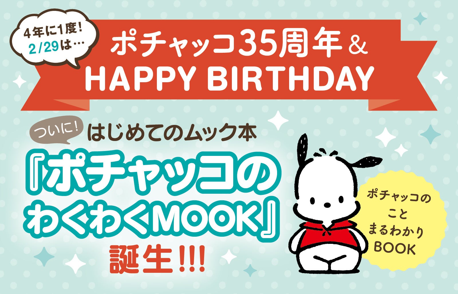 【知ってた?】4年に一度のうるう年2/29は“ポチャッコ”の誕生日!35周年記念にポチャッコファン必携の『ポチャッコのわくわくMOOK』が発売決定!“ふわふわ”な特別付録も♪