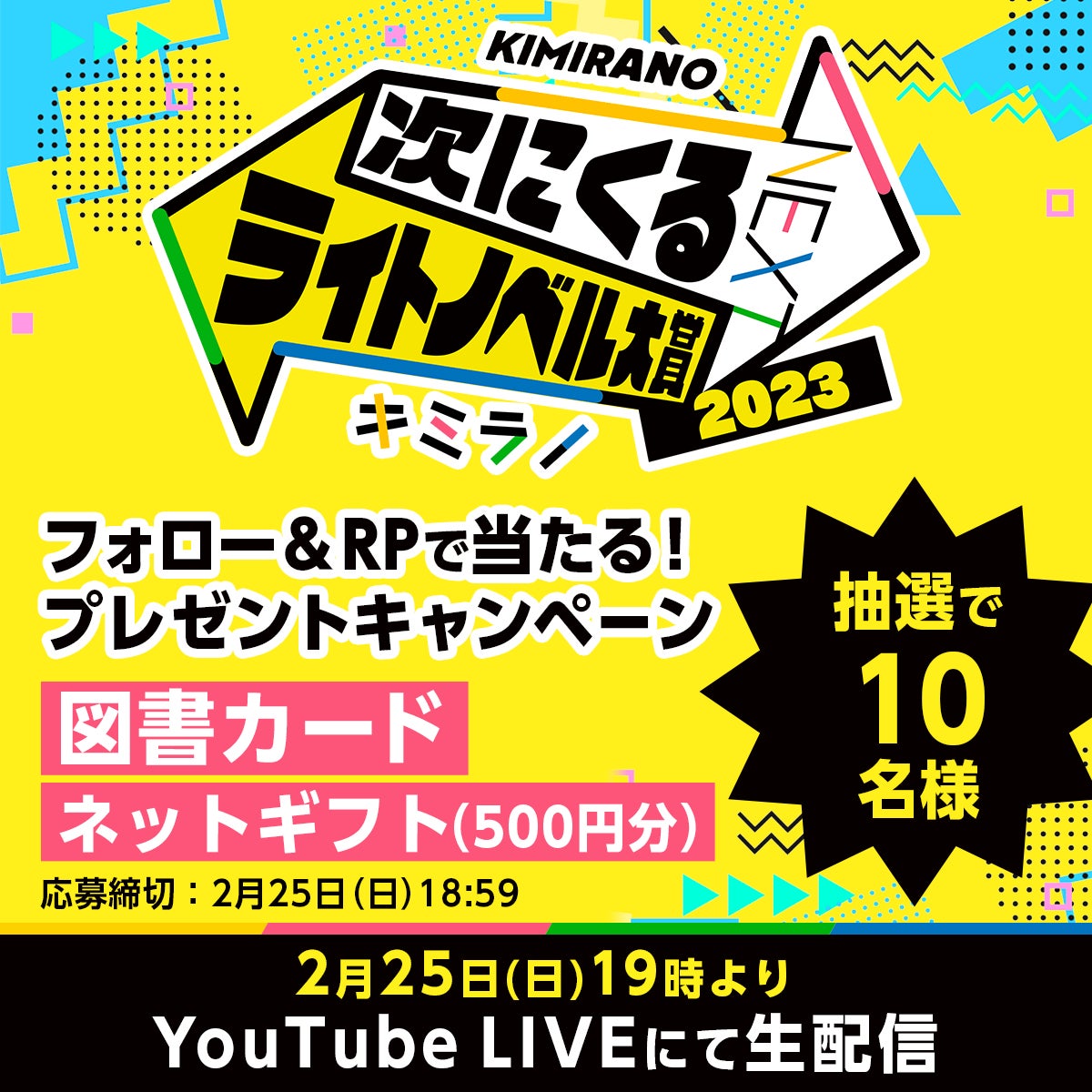 読者が選んだ最強の新作ラノベが決まる! 「次にくるライトノベル大賞2023」受賞作発表会を2月25日(日)19時よりYouTube Liveにて生配信!