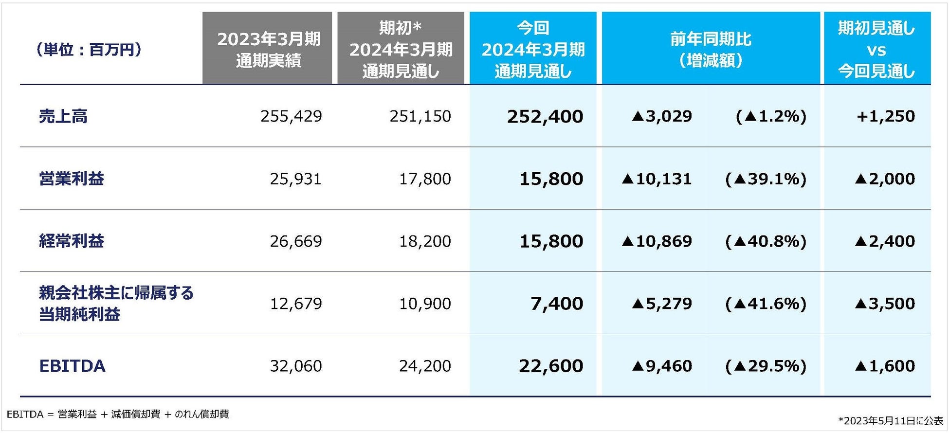 ◆2024年3月期通期連結業績の見通しを修正