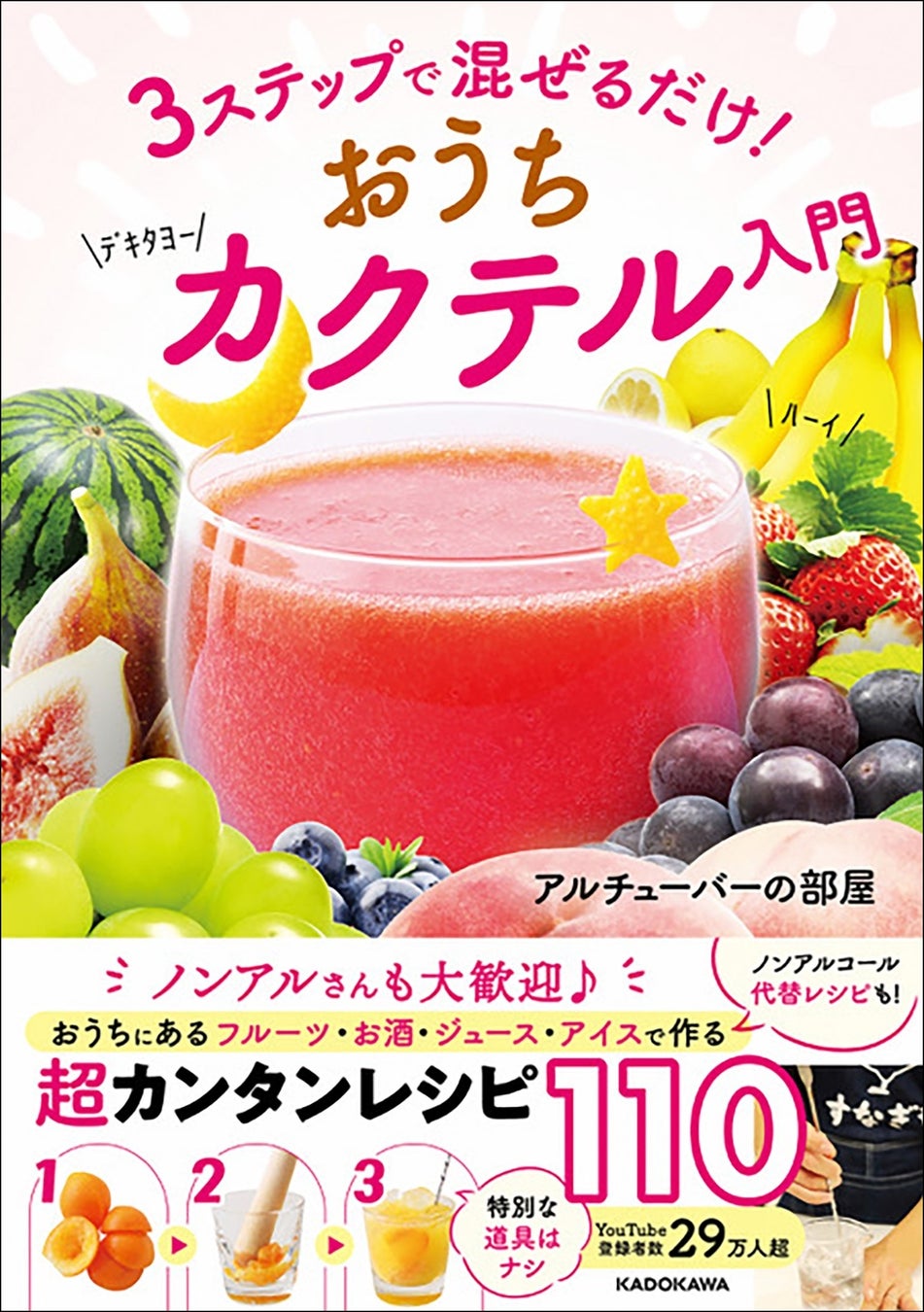 YouTubeチャンネル登録者数30万人超の動画クリエイター「アルチューバーの部屋」の初書籍は、自宅で気軽に作ることができるカクテルのレシピ本です。市販の缶ドリンクを使った超カンタンなカクテルから、旬のフルーツをふんだんに使った本格的なカクテルまで、全110種のレシピを大紹介。また、ジンやウォッカなどを使わない、ノンアルコールにアレンジできるレシピも掲載していますので、お子さんから大人まで、お酒が飲める、飲めないにかかわらず、どんな方でも楽しんでいただける一冊です。