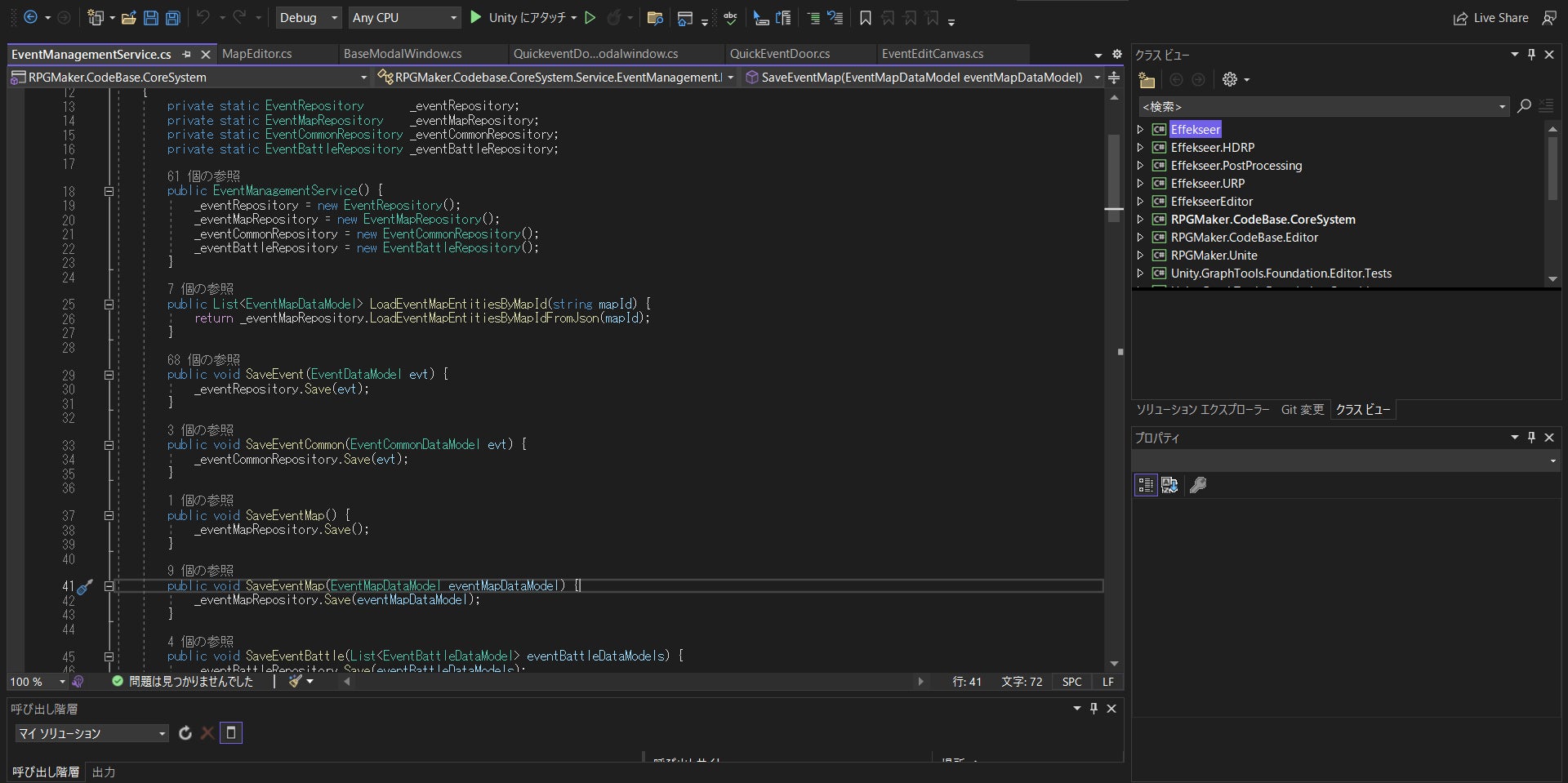 従来のMaker(ツクール)シリーズが提供していたノンコーディングでの制作はもちろん可能ですが、本作より新たに、Unityエディター経由でソースコードの直接書き換えもできるようになりました。(一部DLL化されたファイルを除く)