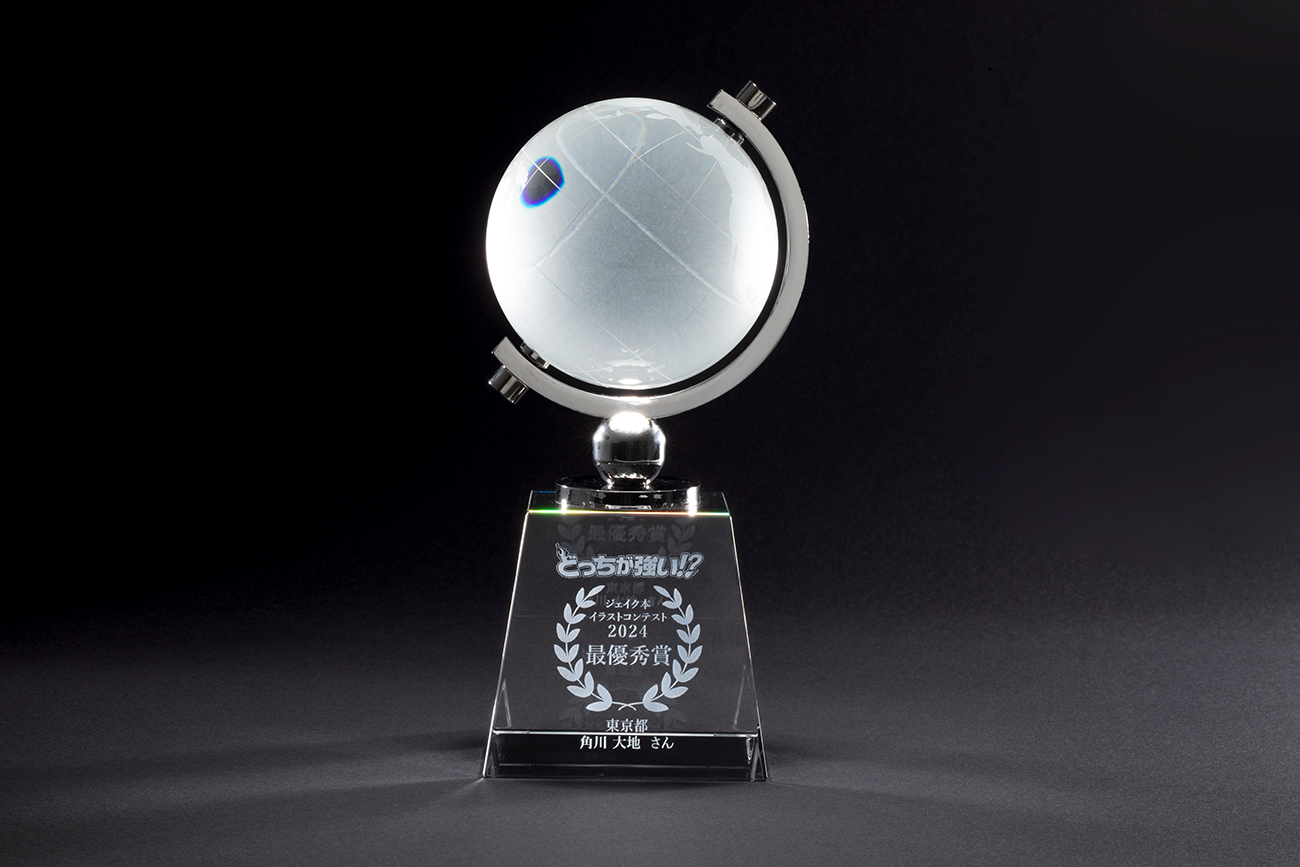 『どっちが強い⁉』ロゴ入り キミだけの地球儀トロフィー クリスタルver.