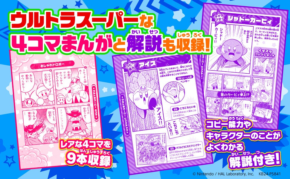 ここだけの4コマまんがや、カービィのコピー能力、キャラクター解説もお届けします。