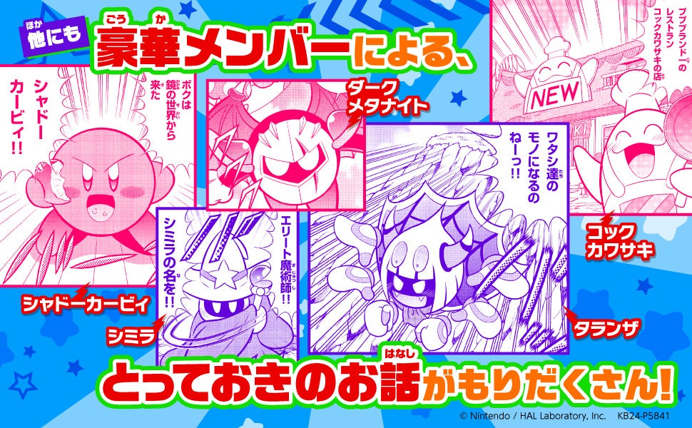 「星のカービィ プププヒーロー」シリーズで登場したマホロアの再登場はもちろん、カービィとドロッチェ団のここだけのオリジナルストーリーをお楽しみください。