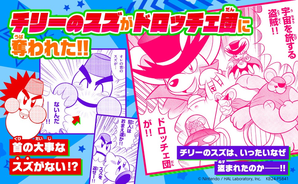 『星のカービィ ウルトラスーパープププヒーロー ドロッチェ団と幻のスズ!!編』では、ここだけでしか読めない、カービィや仲間たちが大活躍するお話が盛りだくさん! カービィファンは必見の1冊です!
