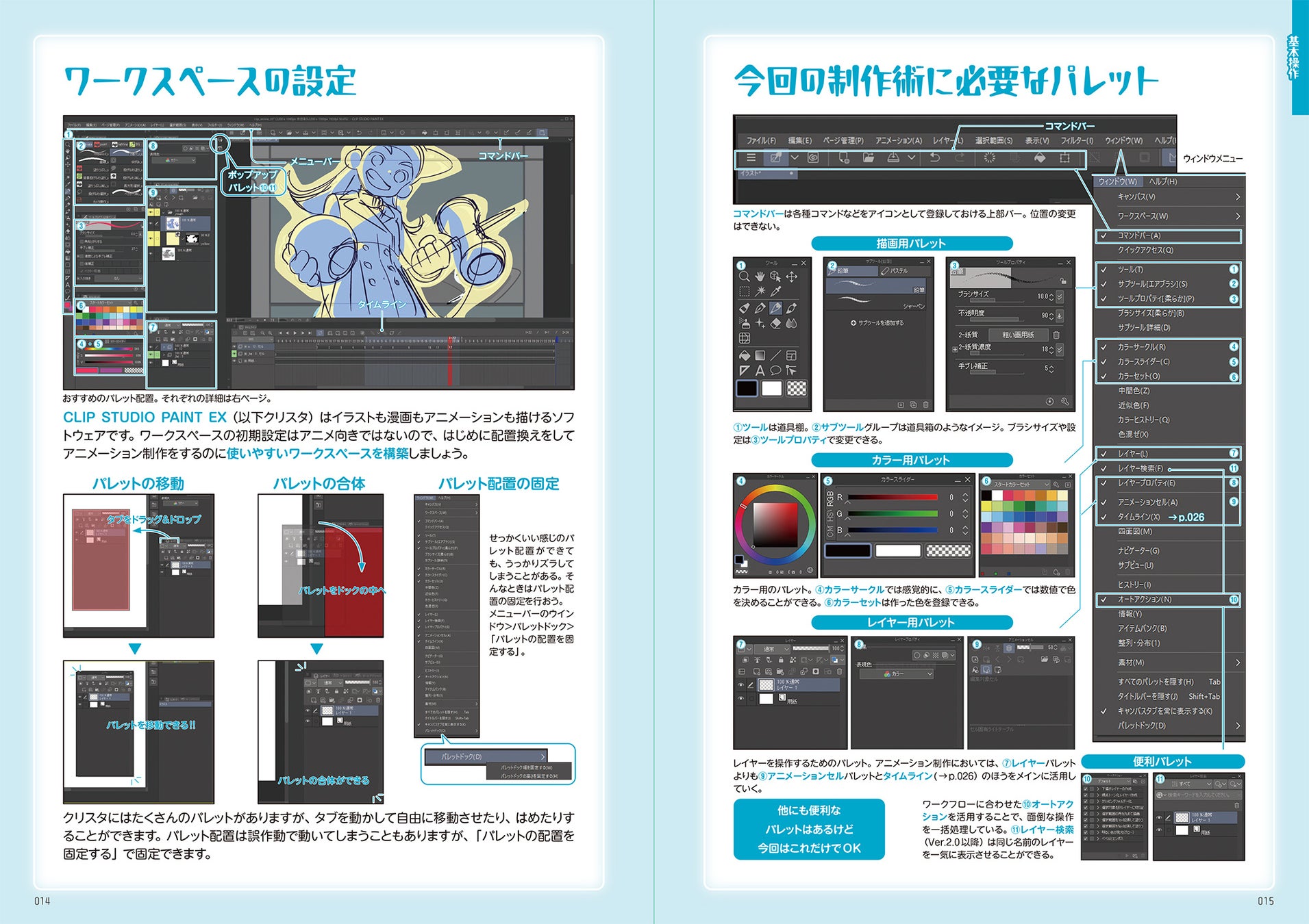 クリスタはイラストも漫画もアニメーションも描けるソフトウェア。基本画面の機能を学んで、アニメーション制作をするのに使いやすいワークスペースを作りましょう。