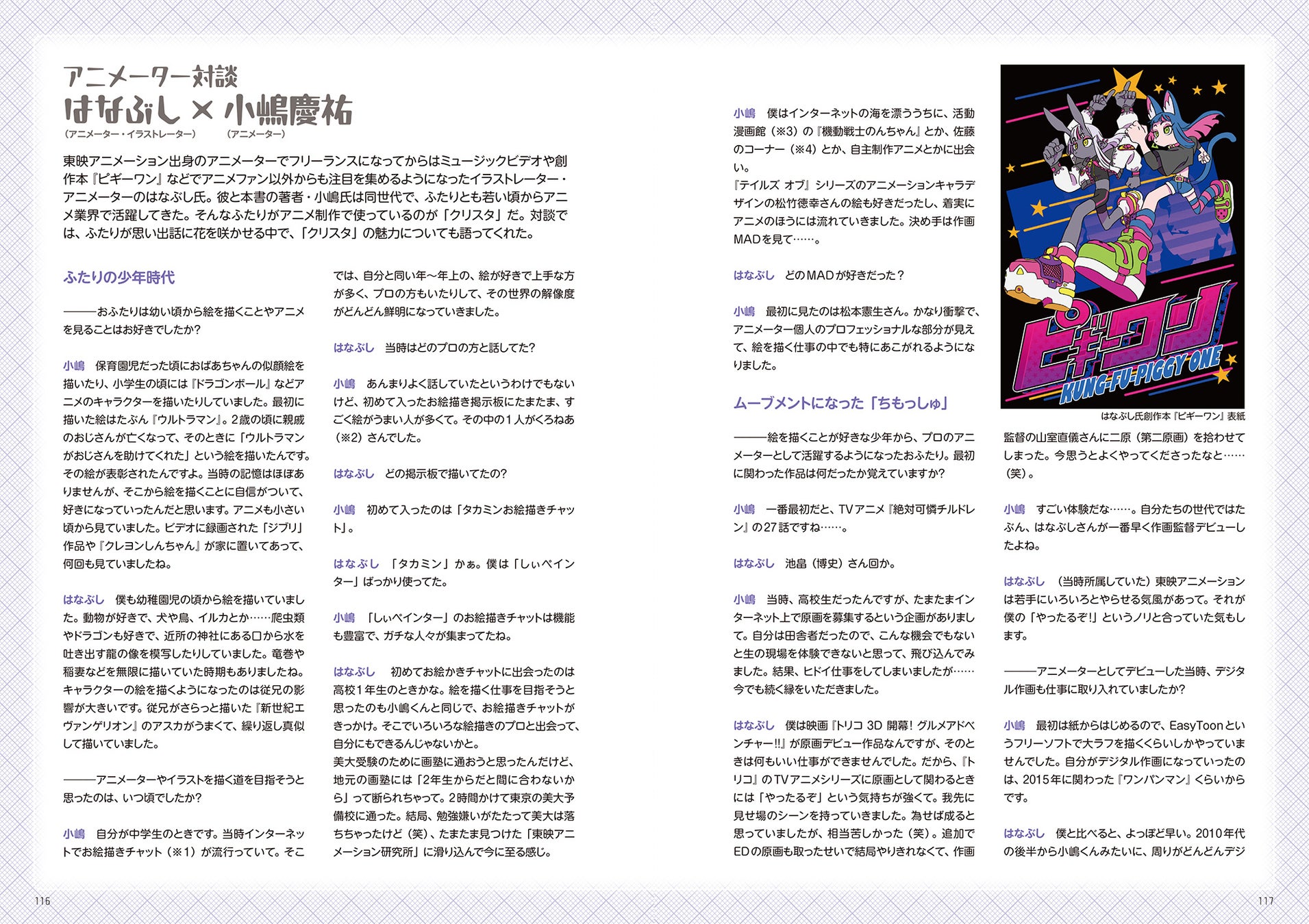同世代のアニメーターで、クリスタユーザーでもあるはなぶし氏との対談を収録。