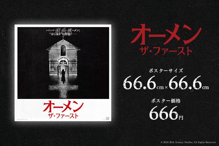 今回発売されるポスタームビチケは、サイズが66.6cm×66.6cm、ポスター価格が666円の、前作を観た人なら脳裏に深く刻まれているだろう数字「666」を想起させる“悪魔のムビチケ”です。2024年3月6日午後6時に販売開始となります。