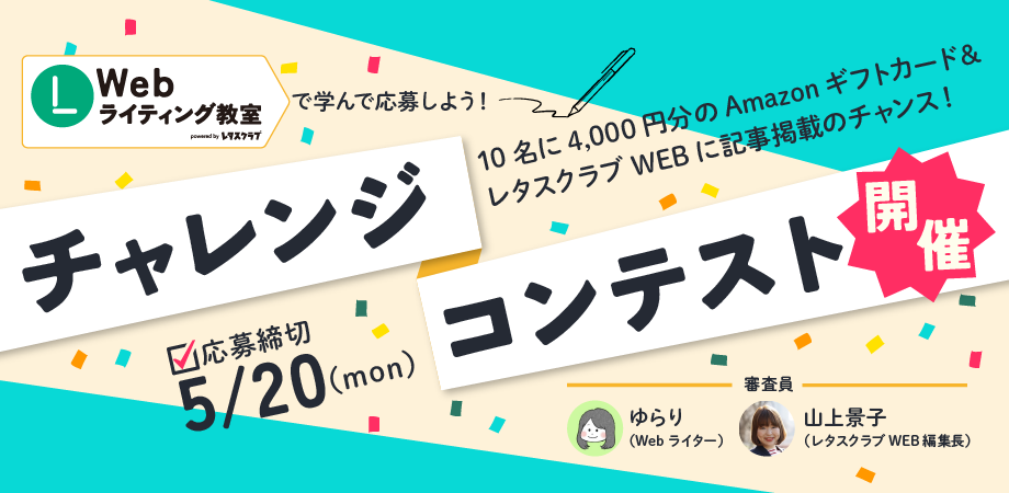 Webライターデビューのきっかけに!「Webライター チャレンジコンテスト」を開催〜優秀作品にAmazonギフトカード4,000円分を進呈、レタスクラブWEBに掲載〜
