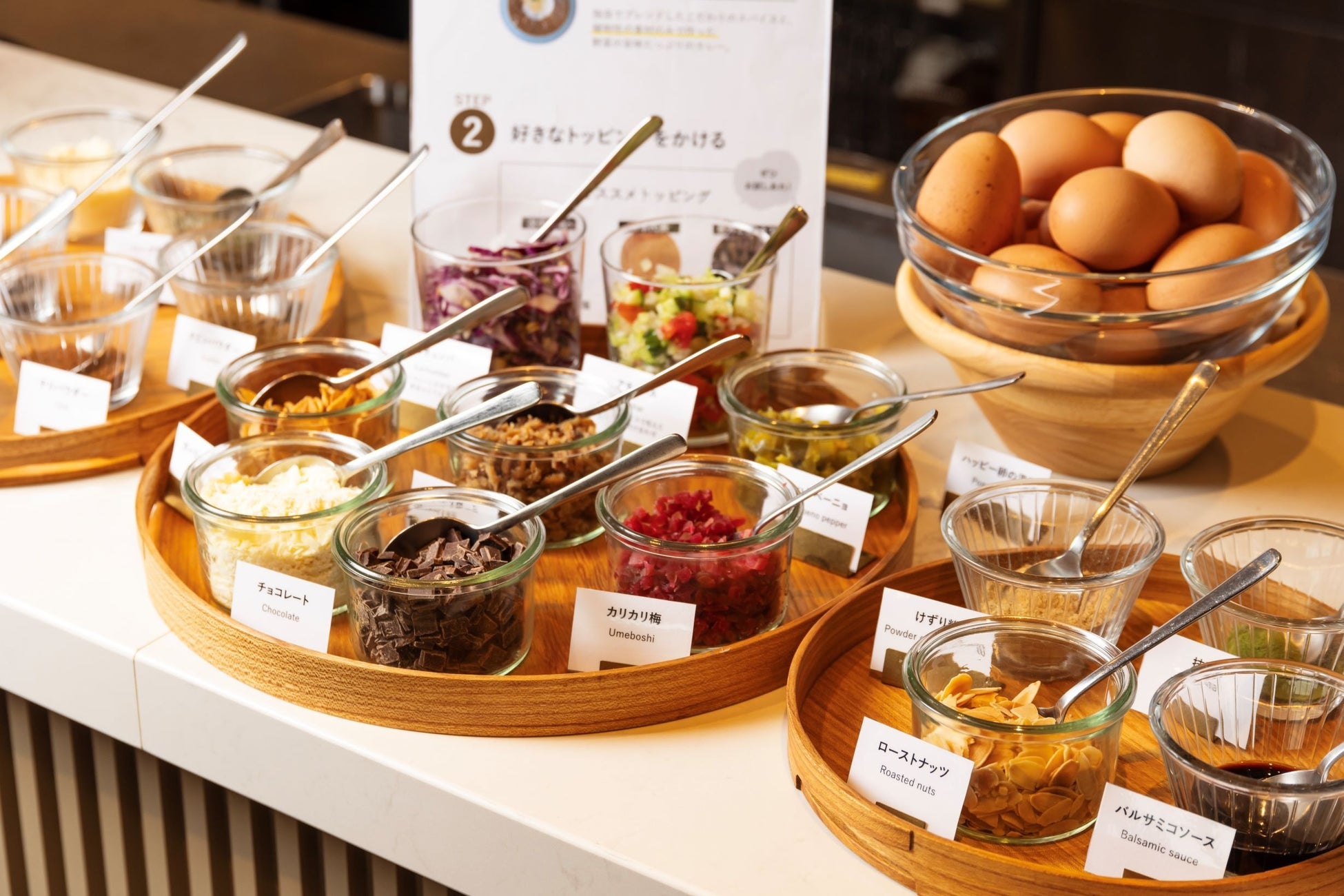 トッピングは角川食堂カレー塩、カチュンバ、アチャール、パルメザンチーズ、チョコレート