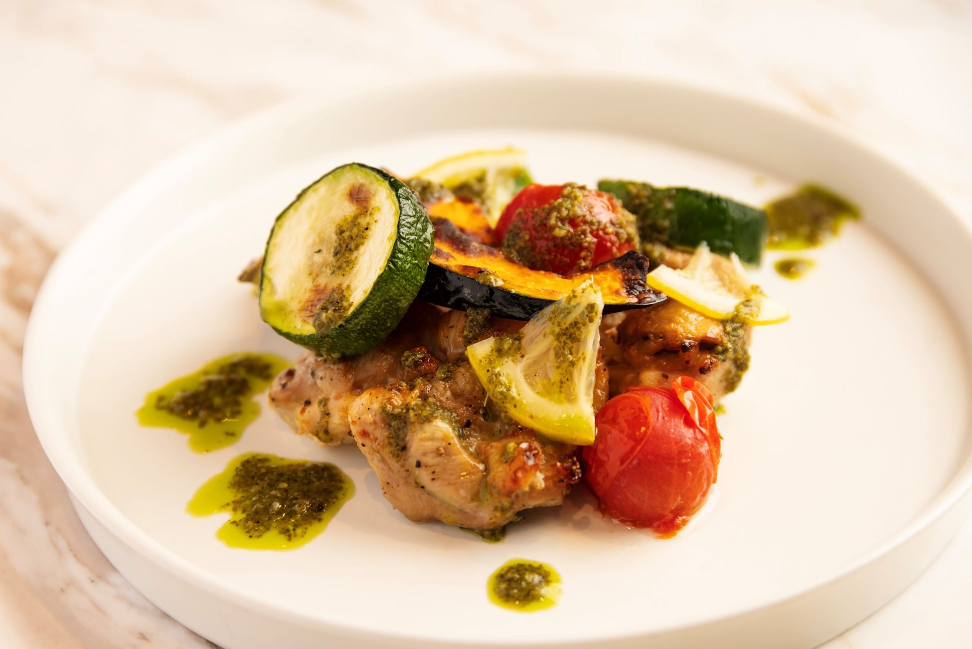 地元野菜をふんだんに使ったごちそうデリに、旨味たっぷりの自家製ロースト肉(写真はローストポーク)、