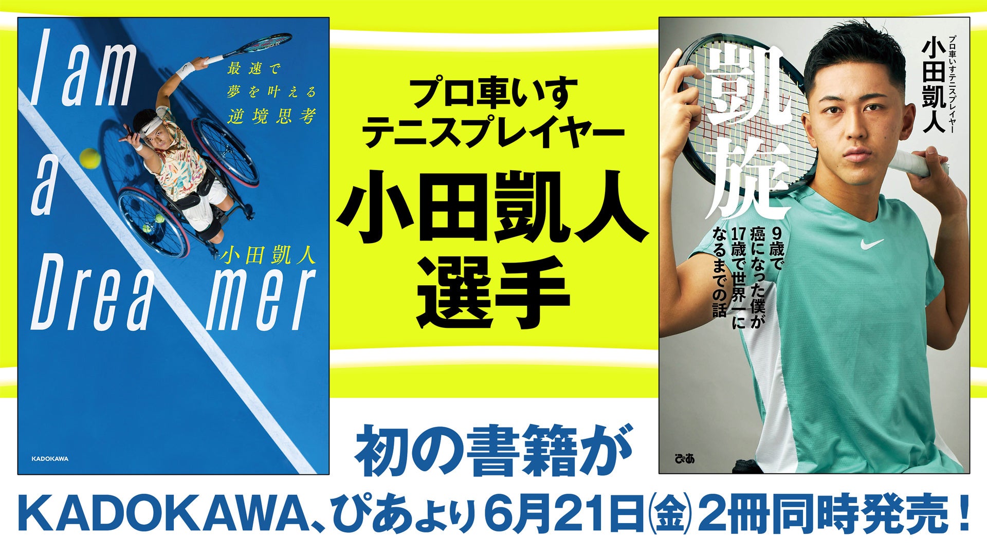 株式会社KADOKAWA(取締役 代表執行役社長 CEO:夏野剛、本社:東京都千代田区)とぴあ株式会社(代表取締役社長 矢内 廣)は、プロ車いすテニスプレイヤー・小田凱人(おだ・ときと)選手の初の書籍を6月21日(金)に2冊同時発売することを決定しました。