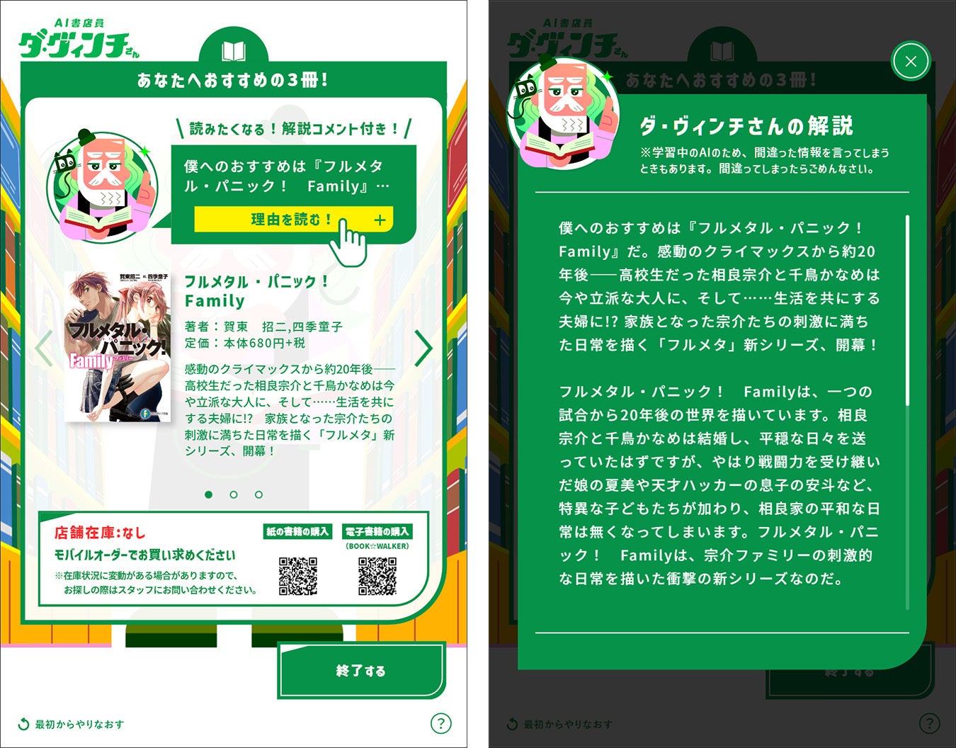 本コンテンツは、2024年4月27日(土)・28日(日)の2日間、千葉県の幕張メッセで開催されるイベント「ニコニコ超会議2024」に同社が出展する“未来の書店”「超ダ・ヴィンチストア」においても展示される注目のリコメンドサービスです。